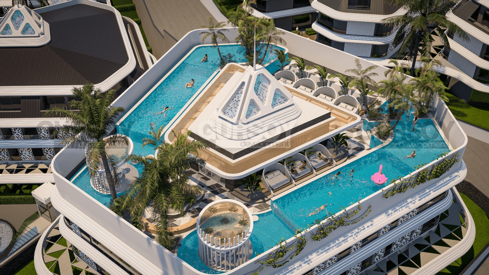 В комплексе предусмотрена богатая инфраструктура: отдельные бассейны для мужчин и женщин, SPA, хамам, сауна, паровая комната, фитнес-зал, кинотеатр, кафе, ресторан, детские игровые площадки, баскетбольная площадка, зона барбекю, декоративный сад, частный пляж, трансфер к морю и в центр Алании, охрана 24/7, генератор, магазин, медпункт и управляющая компания.