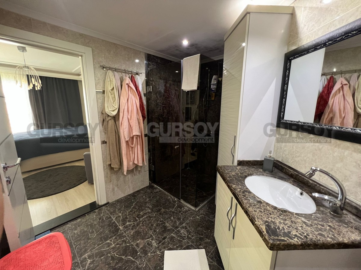 Площадь квартиры составляет 120 квадратных метров, и она имеет планировку 2+1. В квартире два санузла и два больших балкона, которые послужат дополнительным пространством для вашего отдыха и комфортного проживания.