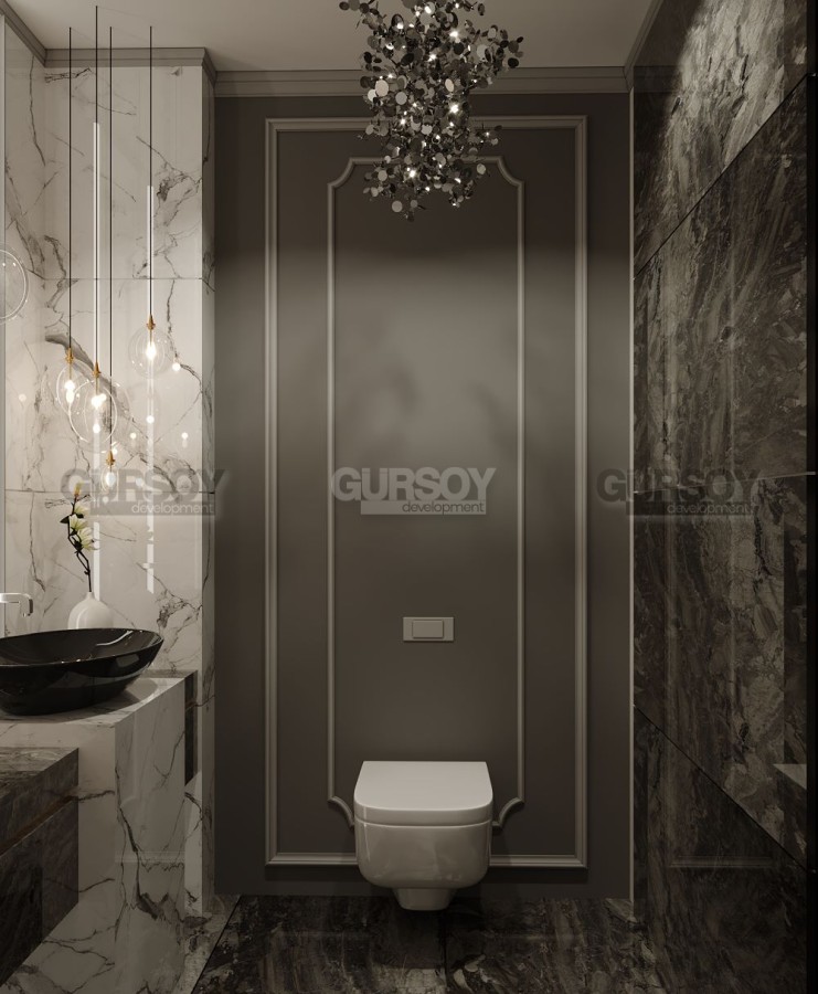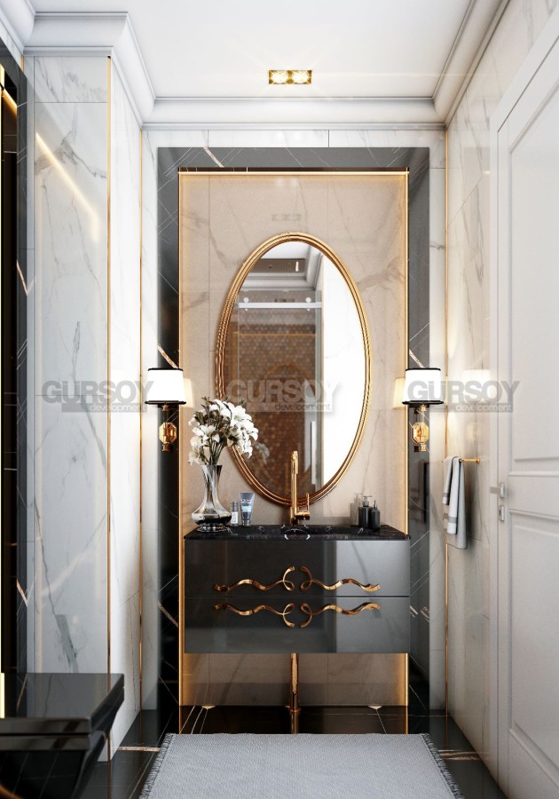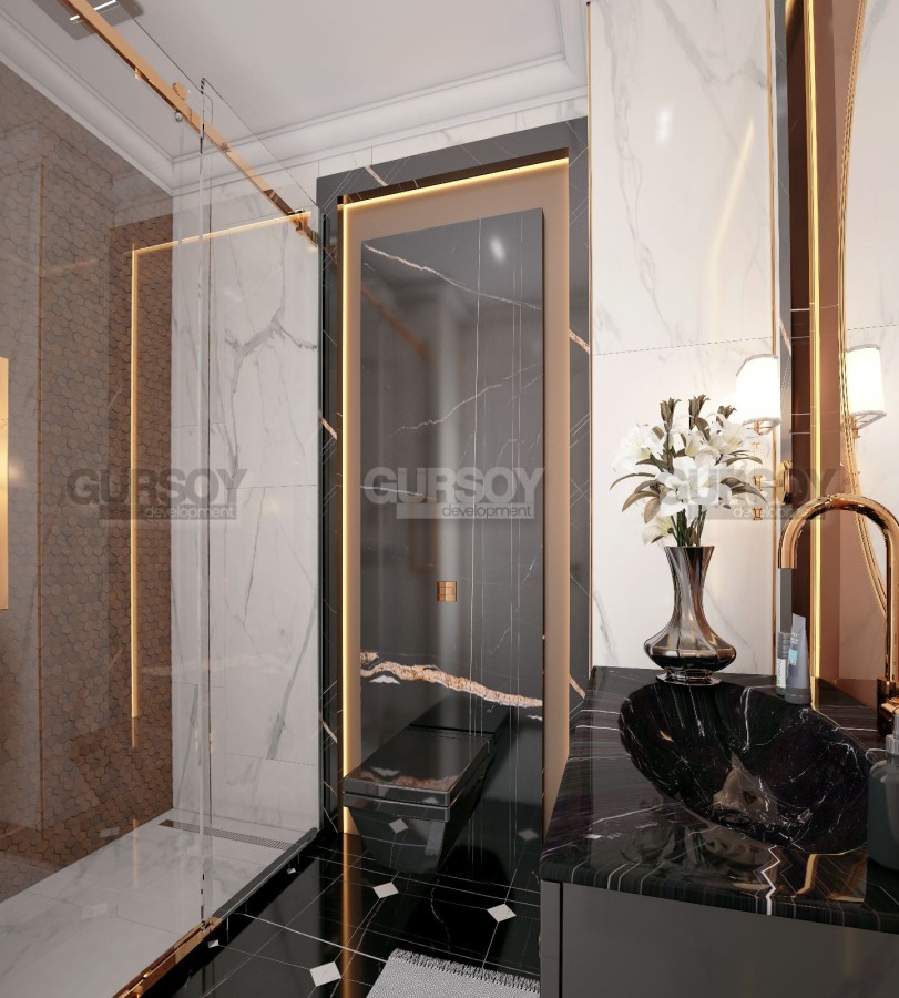 Все апартаменты продаются с чистовой отделкой, полностью оборудованной кухонной зоной с гранитной рабочей поверхностью, современными ванными комнатами с душевой кабинкой, встроенной мебелью и итальянскими светильниками. Каждый апартамент оборудован встроенным гардеробным шкафом, декоративной подсветкой и кондиционерами во всех комнатах.