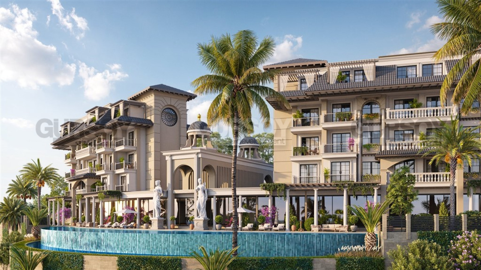 Территории проекта уделено особое внимания для того, чтобы собственники квартир имели множество зон для отдыха такие как, бассейны, бар, крытый бассейн, фитнес, сауна, массажные комнаты, хамам, парная, VIP СПА, зона отдыха, кафетерий, хобби-комната, игровая, ресторан, спортивные площадки, мини-клуб, игровая площадка, автопарковка, бизнес-зал, кинотеатр, библиотека, маркет, интернет на территории, генератор, трансфер до моря.