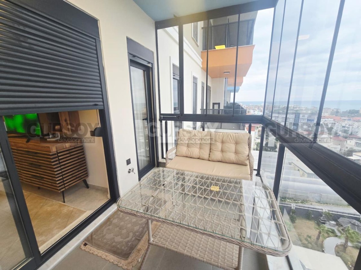 Продаётся квартира планировки 1+1 площадью 55 м², расположенная на 9 этаже девятиэтажного дома 2023 года постройки. Планировка включает гостиную с кухней открытого типа, одну спальню, ванную комнату и балкон. Установлен кондиционер. В продаже два варианта: без мебели — 81 000 €, меблированная — 92 000 €.