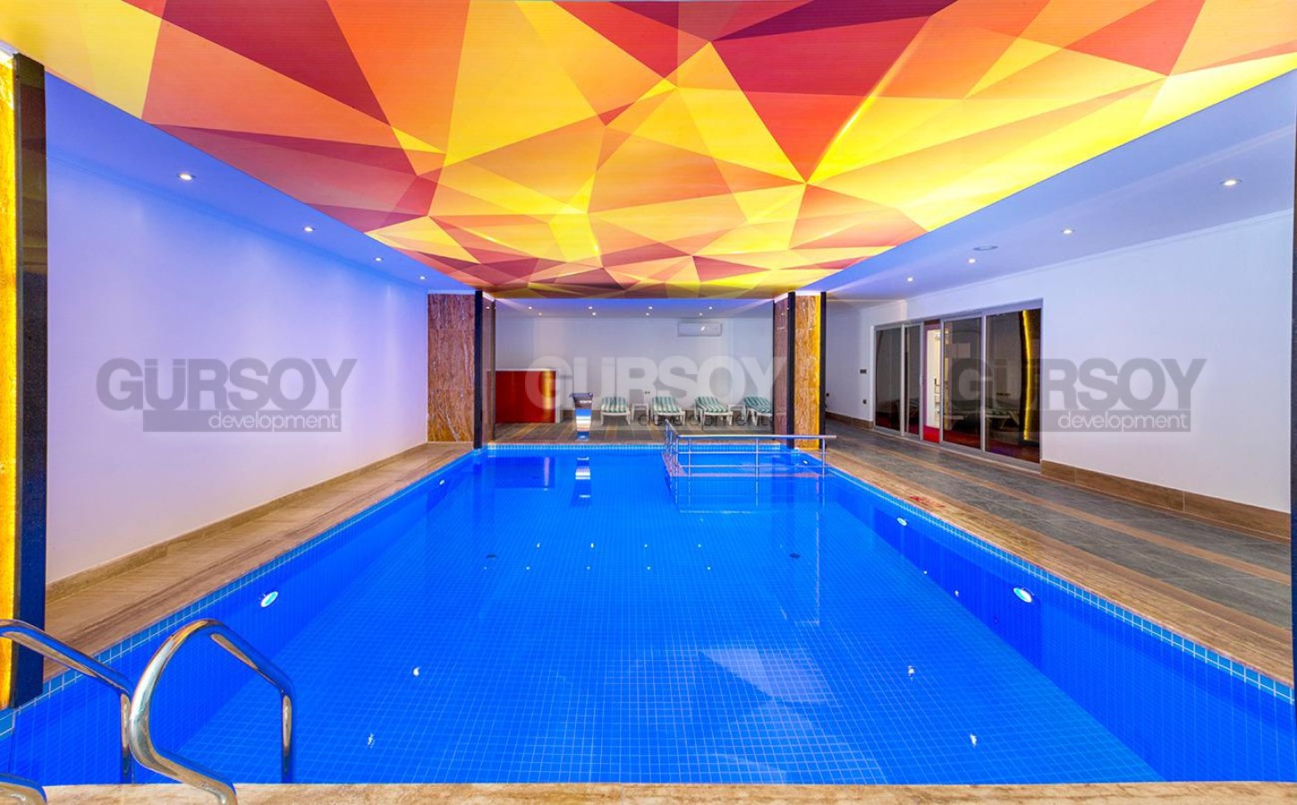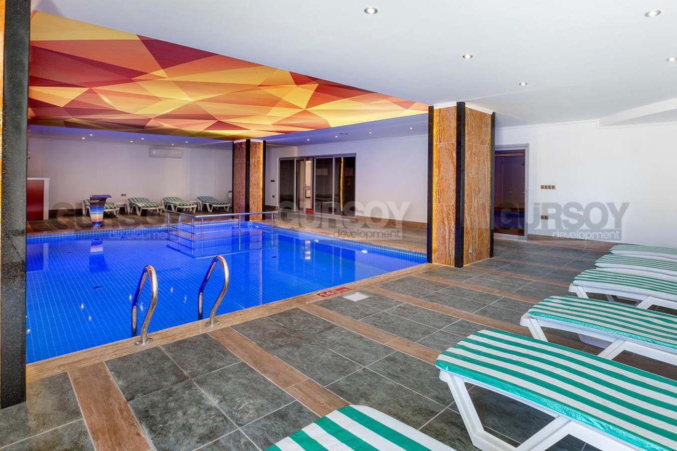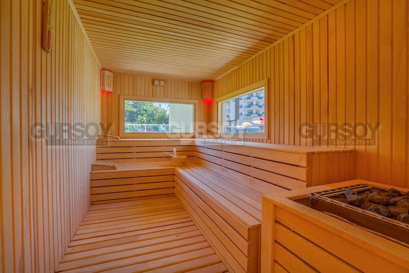 Жилой комплекс, в котором находится квартира, был построен в 2016 году и предлагает к услугам владельцев апартаментов следующие дополнительные сервисы: открытый и крытый бассейны, водные горки, фитнес зал, сауну, хамам, детскую площадку, мини-клуб, игровую комнату с бильярдом и настольным теннисом, и беседку для отдыха в саду.
