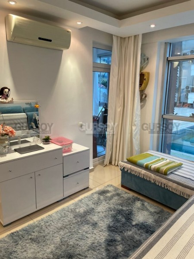 Квартира расположена на 1-м этаже 4-этажного жилого комплекса 2015 года постройки. На территории комплекса: открытый бассейн с детской секцией, крытый бассейн, сауна, хамам, фитнес зал и лифт. Расстояние до прекрасного пляжа Клеопатры, который отличается чистой и прозрачной водой - 350 метров. Район с прекрасно развитой инфраструктурой - в шаговой доступности магазины, супермаркеты, пекарни, кафе, аптеки, банки, центральный рынок и т. д.