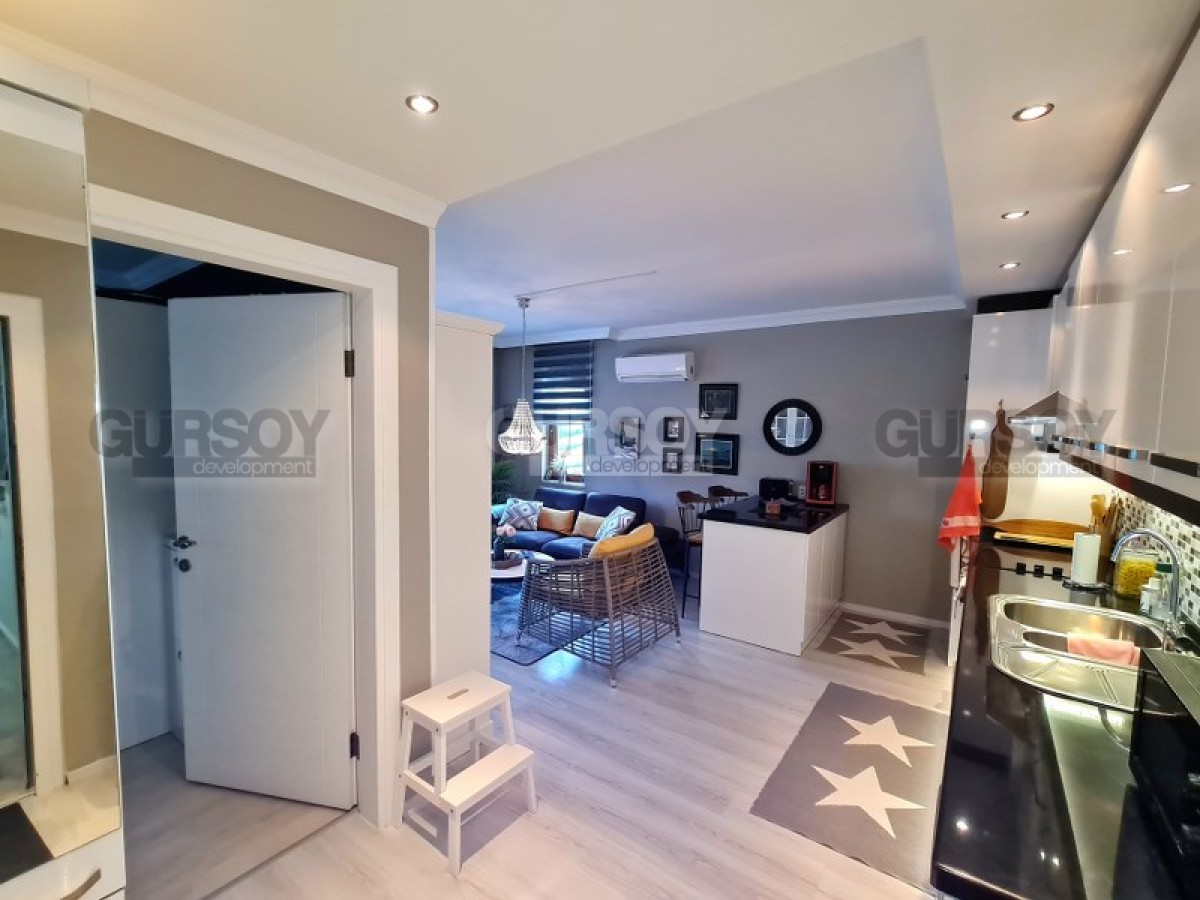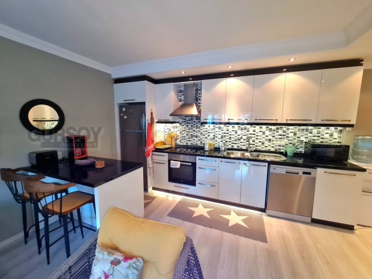 Компания Gürsoy Development представляет вашему вниманию квартиру 1+1 в уютном жилом комплексе в районе Оба. Площадь квартиры 60 м2, а планировка 1+1 подразумевает наличие гостиной, совмещённой с кухней, спальни, ванной комнаты и балкона. Квартира продаётся в полной меблировке и с установленной бытовой техникой, в каждой комнате установлен кондиционер. Ванная комната оборудована душевой кабиной и современной сантехникой, есть стиральная машина. Квартира расположена на 1-м этаже 4-этажного жилого комплекса 2016 года постройки. С просторного застеклённого балкона открывается вид на Таврские горы, вечнозелёные пальмы и ухоженную территорию комплекса.