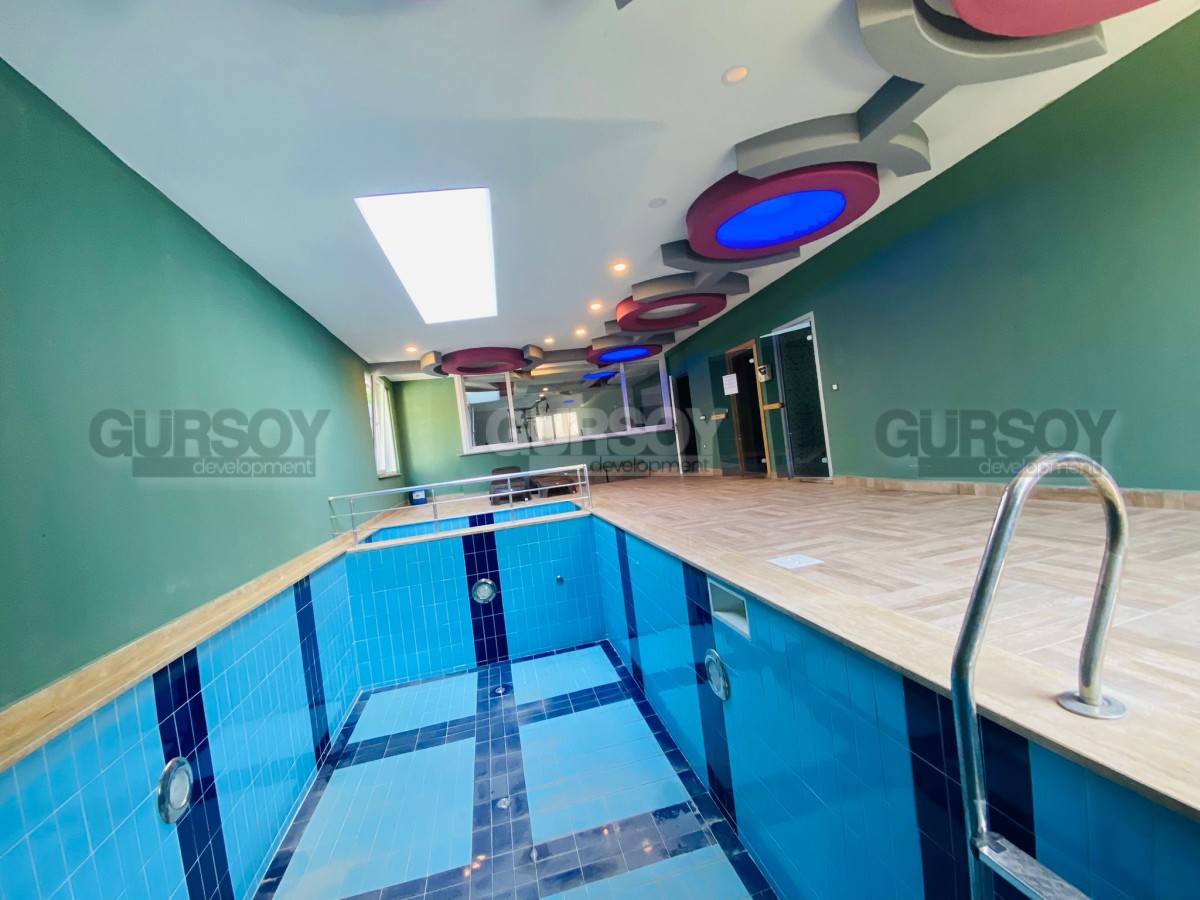 Эта современная резиденция 2020 года постройки имеет отличную инфраструктуру включающую, плавательный бассейн, аквагорки, крытый бассейн, сауну, парную, фитнес, беседку, бильярд, настольный теннис, генератор, автопарковку, детскую игровую зону.