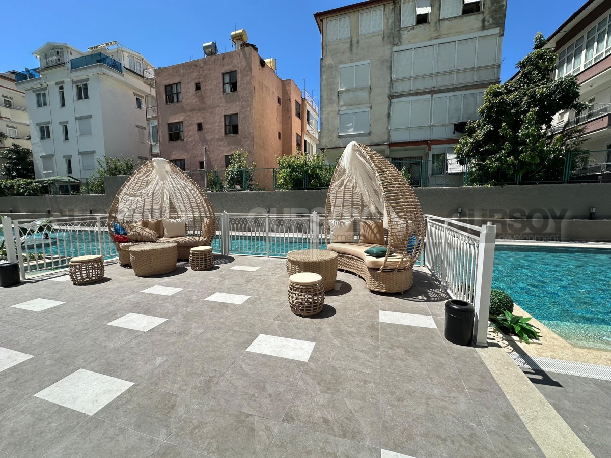 Новая квартира 1+1 площадью 60 м² расположена на 4-м этаже девятиэтажного жилого комплекса 2025 года постройки. Из окон открывается живописный вид на бассейн и историческую крепость Аланьи, создавая особую атмосферу уюта и гармонии. Квартира полностью оборудована всем необходимым для комфортного проживания — от бытовой техники до сантехники. Останется только выбрать мебель на свой вкус и сразу заехать.