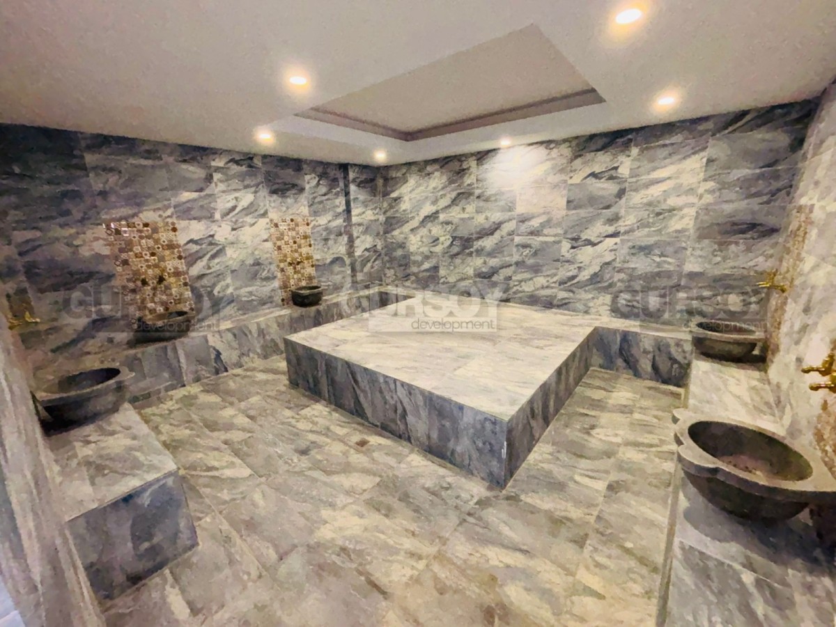 На территории комплекса предусмотрены все условия для комфортной жизни и отдыха: открытый бассейн, турецкий хамам и сауна, фитнес-зал. Также есть закрытая парковка, генератор, лифт, система видеонаблюдения и смотритель здания.