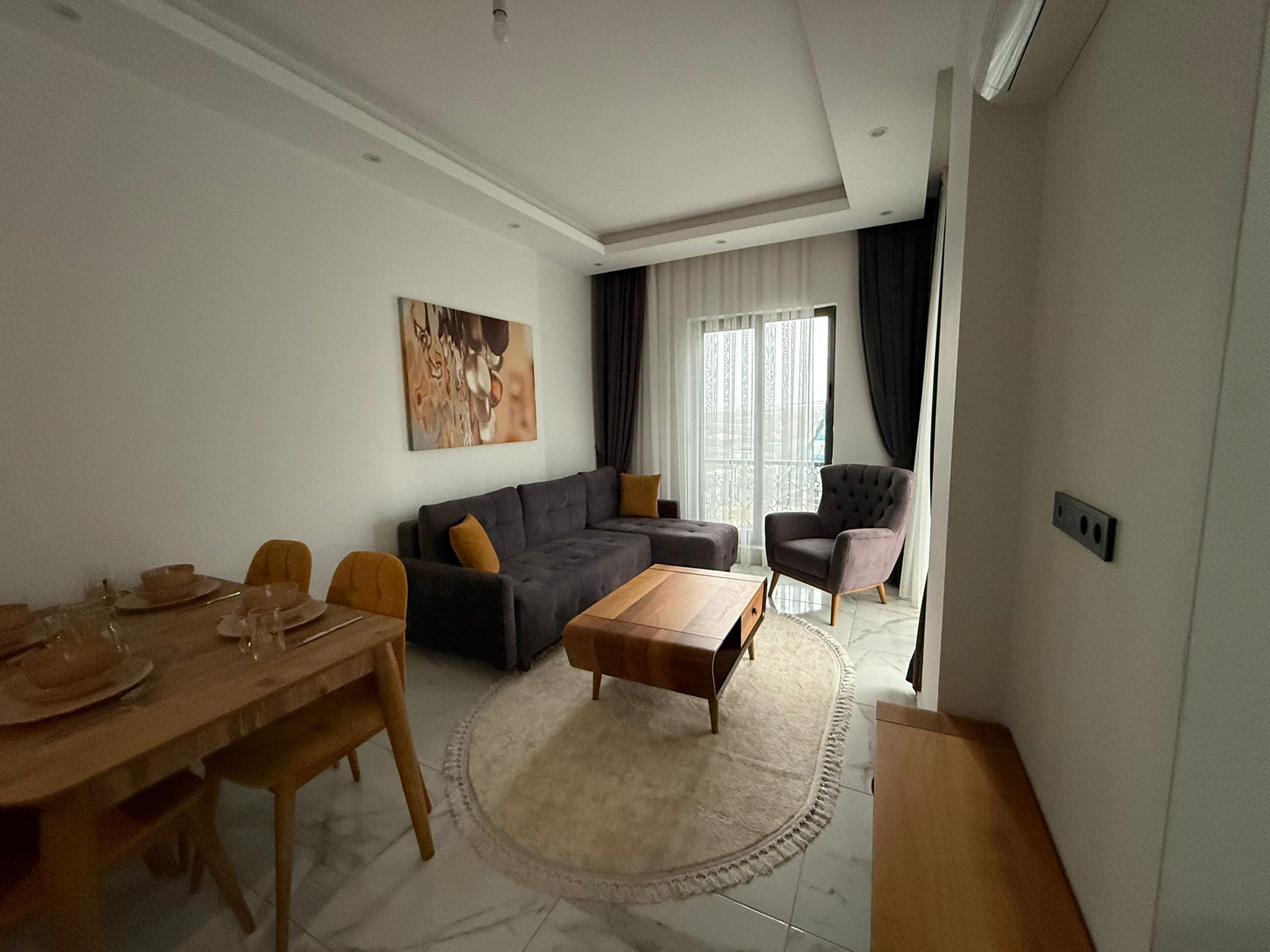 Продается квартира с одной спальней и гостиной в современном жилом комплексе в Махмутларе. Площадь квартиры составляет 50 м², что идеально подходит для комфортного проживания или аренды. В квартире есть просторный балкон, ванная комната с туалетом и современная отделка. Квартира расположена на четвертом этаже пятиэтажного здания, что обеспечивает отличное освещение и прекрасный вид на окрестности. Новый дом, построенный в 2023 году, предлагает все удобства для комфортного проживания.