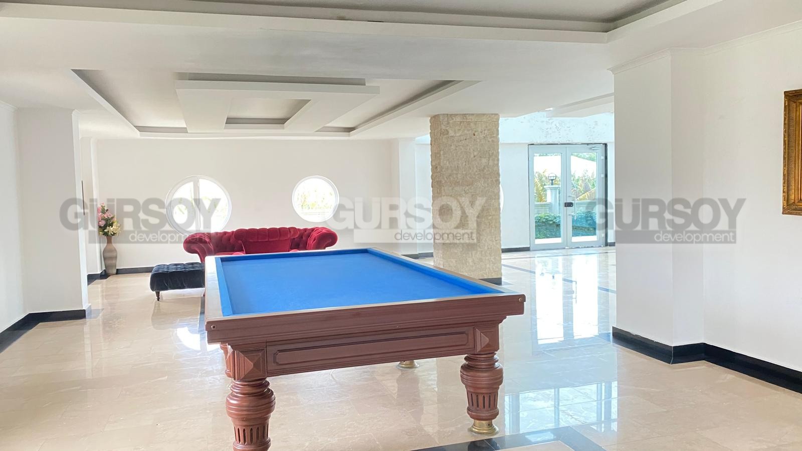 Комплекс, в котором расположена квартира, представляет собой зеленую территорию с инфраструктурой отельного типа. Здесь вы найдете открытый и крытый бассейны, сауну, хамам, фитнес-центр, комнату отдыха, места для барбекю, детскую площадку и парковку. Также обеспечена безопасность с помощью системы видеонаблюдения и охраны. Эта квартира идеально подходит для отдыха или дополнительного дохода при сдаче в аренду.