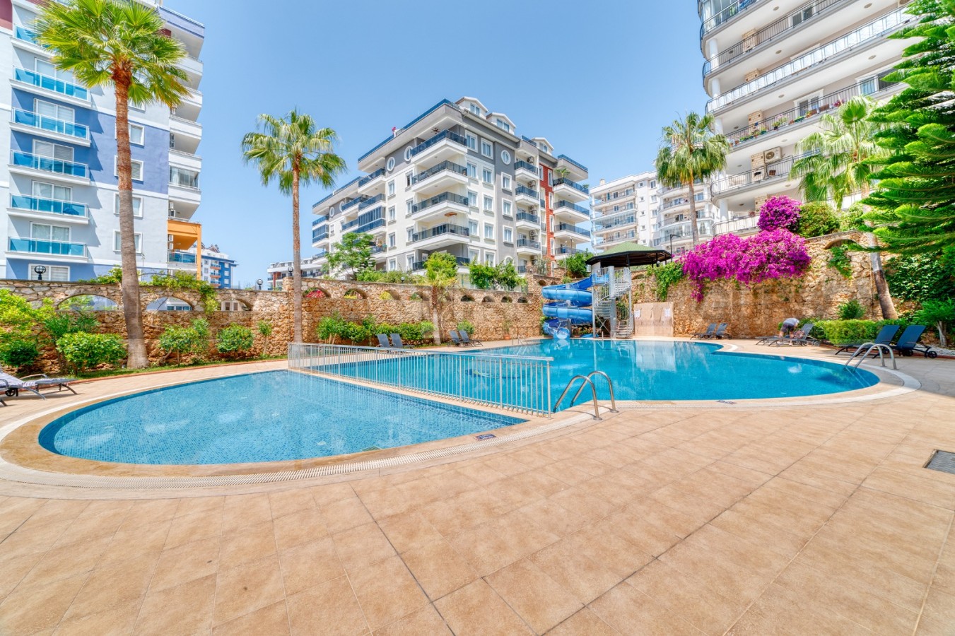 Жители комплекса могут наслаждаться богатым выбором удобств, включая открытый бассейн с горками и баром, закрытый зимний бассейн, сауну, хамам, фитнес-зал, а также обширную зеленую территорию с зоной барбекю и детской площадкой. Охраняемая территория обеспечивает вашу безопасность и спокойствие.