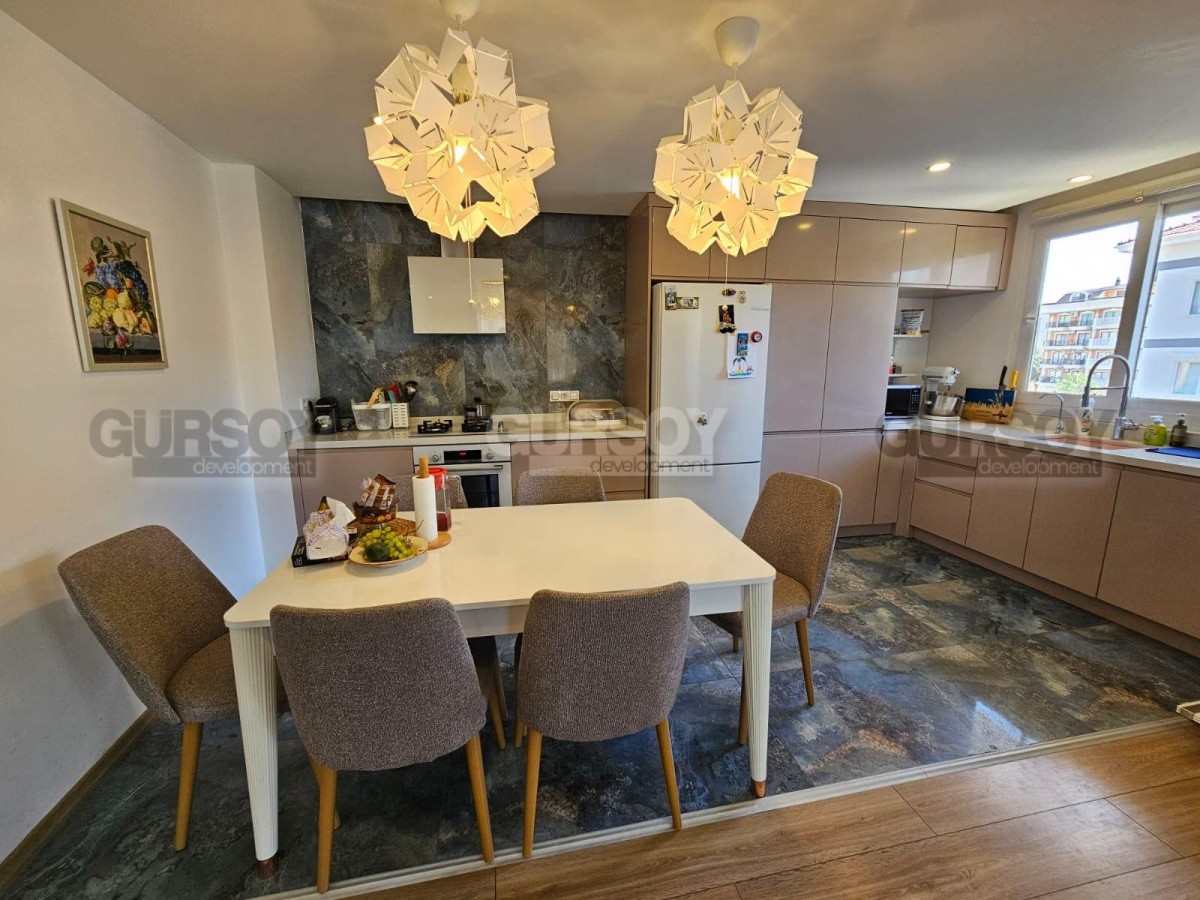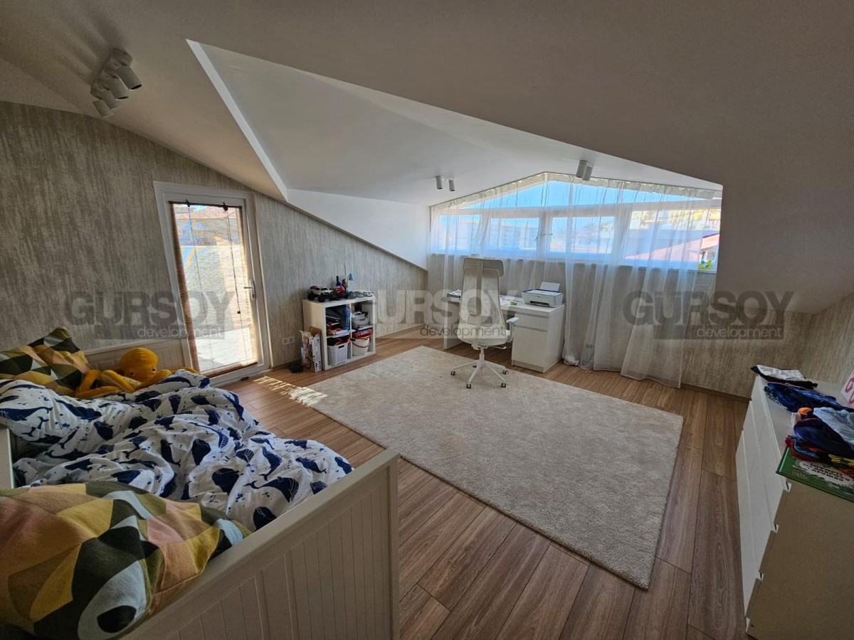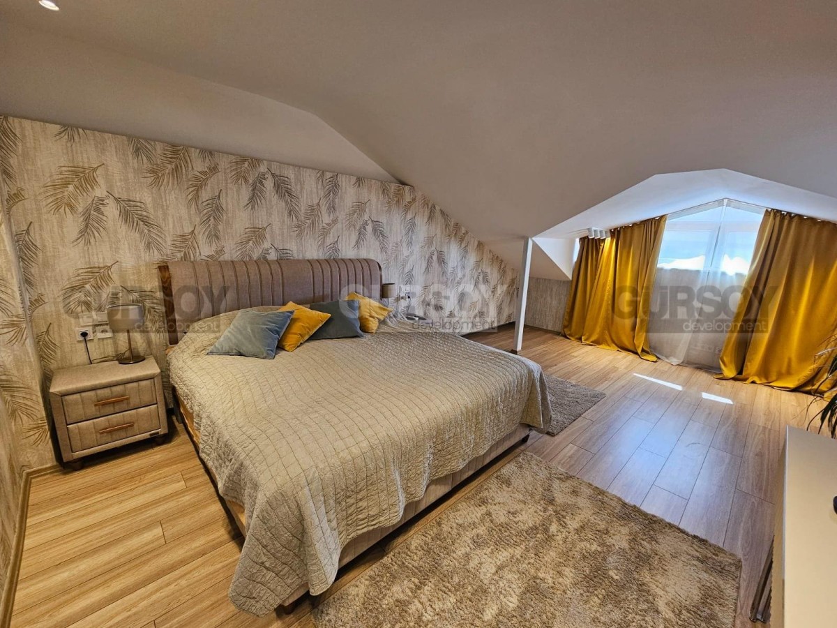 Дуплекс 5+1 – это просторное и уютное жильё площадью 250 м², идеально подходящее для большой семьи или тех, кто ценит комфорт и пространство. Функциональная планировка включает пять спален, просторную гостиную, кухню открытого типа и три санузла, обеспечивая удобство и уют для всех жильцов. Квартира полностью меблирована и готова к заселению. Изюминкой этого дуплекса является застекленный балкон с зоной барбекю, где можно проводить уютные вечера, а также просторная терраса, идеально подходящая для отдыха и загара.
