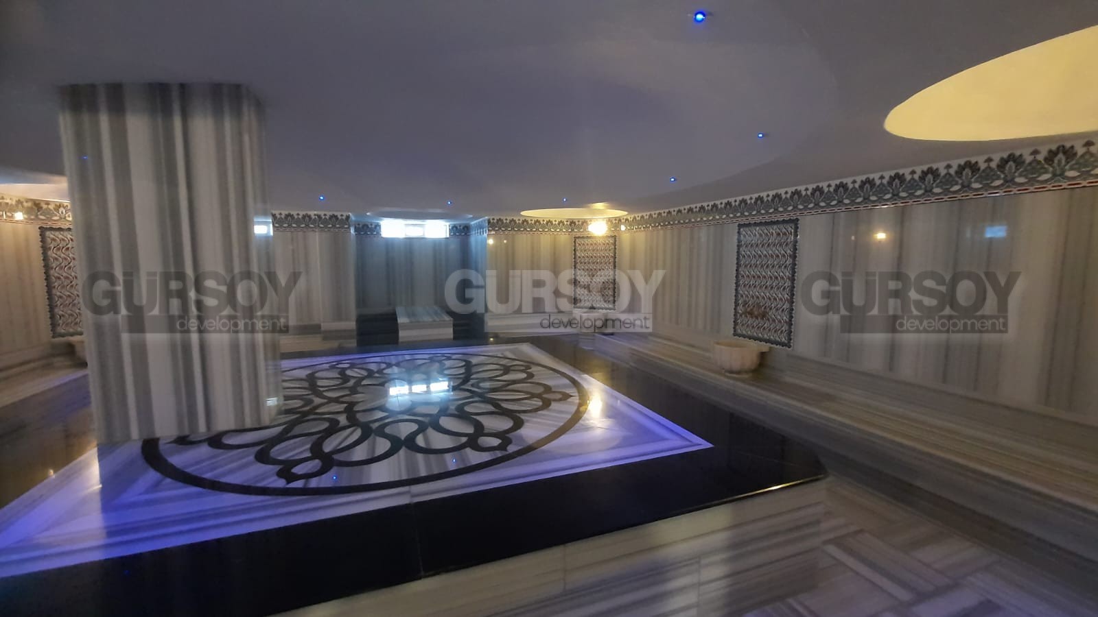 Жилой комплекс, состоящий из 4 блоков и построенный в 2016 году, предлагает своим жильцам широкий спектр инфраструктурных удобств. В вашем распоряжении: открытый и закрытый бассейны, детский бассейн, крытая игровая зона для детей, бар у бассейна, оборудованная зона для барбекю, ландшафтный сад, лобби, библиотека, конференц-зал, стол для тенниса, фитнес-зал, турецкий хамам, массажные кабинеты, зона отдыха, сауна, паровая комната, гараж для велосипедов и мотоциклов, а также охраняемый вход с кодовой системой и проживающий на территории персонал.