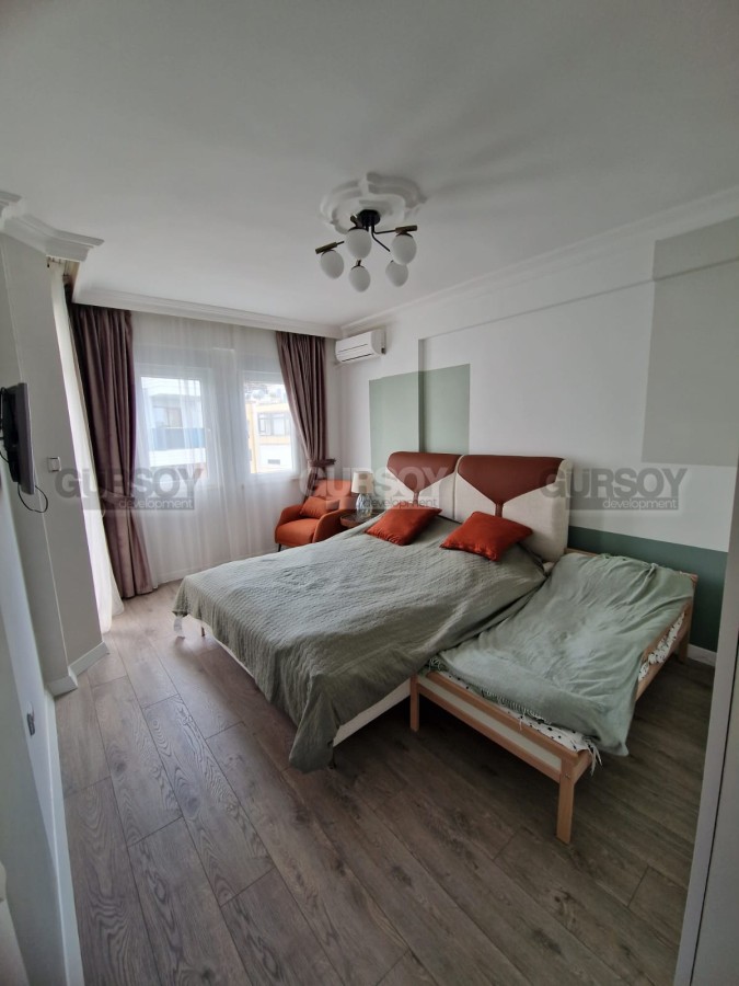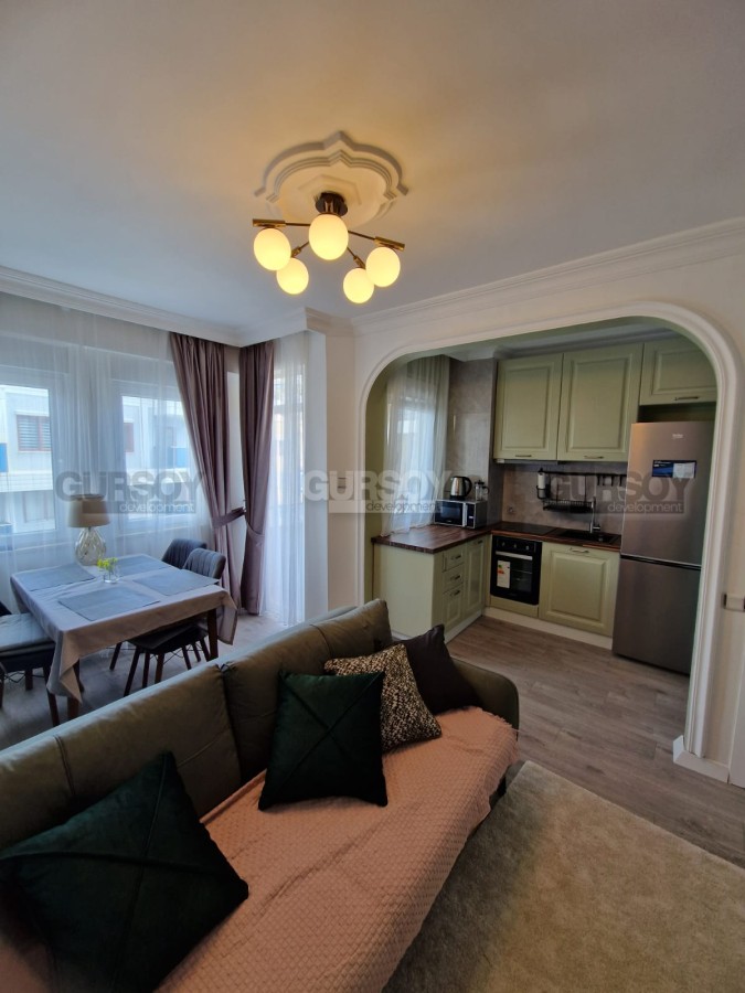 Добро пожаловать в самое сердце Алании — идеальное место для тех, кто мечтает о комфортной жизни на берегу моря. Эта квартира планировки 2+1, представляет собой идеальное сочетание уюта и функциональности. Гостиная, соединенная с американской кухней, создает прекрасное пространство для семейных посиделок и приемов гостей. Два уютных спальных помещения и ванная комната обеспечат вам уединение и расслабление после насыщенного дня. Эта квартира продается с мебелью и техникой, что делает ее готовой для комфортного проживания сразу после приобретения.