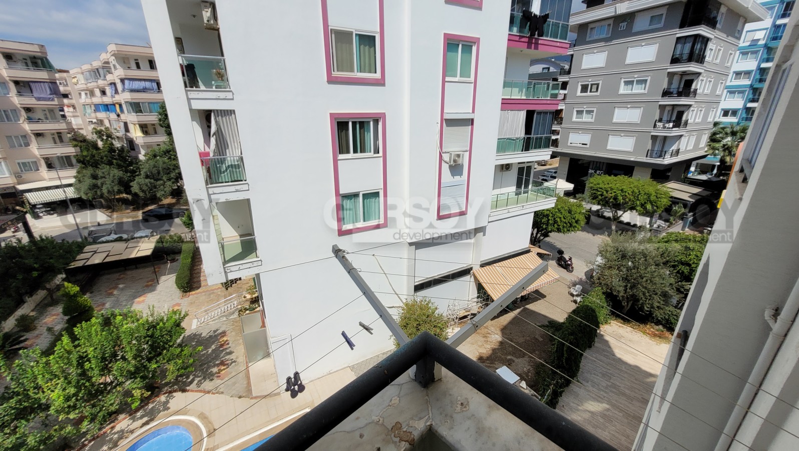 Комплекс аккуратный, ухоженный, с бассейном и лифтом, что делает проживание комфортным как летом, так и в течение всего года. Ежемесячный айдат на момент публикации составляет всего 500 TL.
