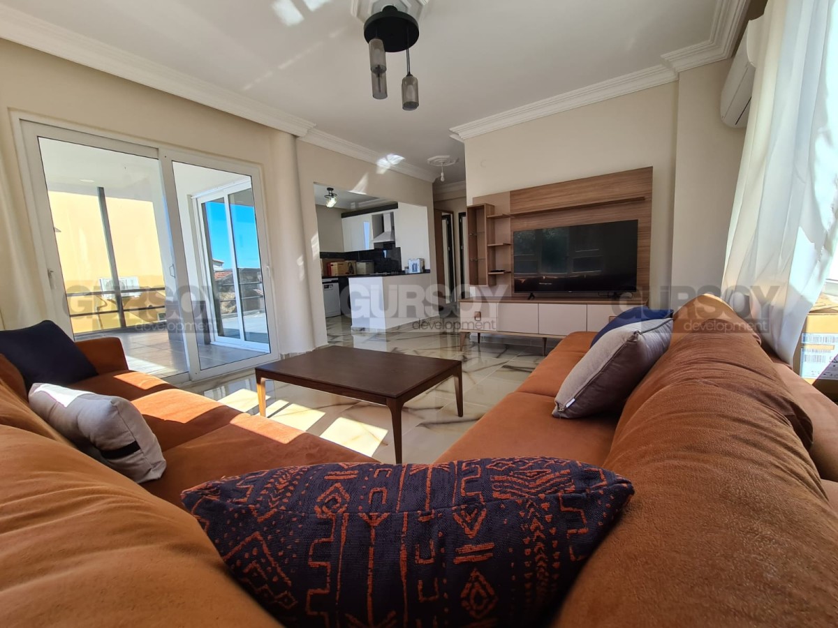 Вилла формата 2+1 спроектирована с вниманием к деталям. Внутри вас ожидает уютная кухня, объединенная с просторной гостиной, две светлые спальни для комфортного отдыха и два современных санузла, которые создают ощущение уюта и удобства. Одной из главных особенностей этой виллы является терраса, выходящая из гостиной, с которой открывается захватывающий вид на бескрайние просторы Средиземного моря. На террасе также расположен частный бассейн, где вы сможете наслаждаться освежающими купаниями в любое время.