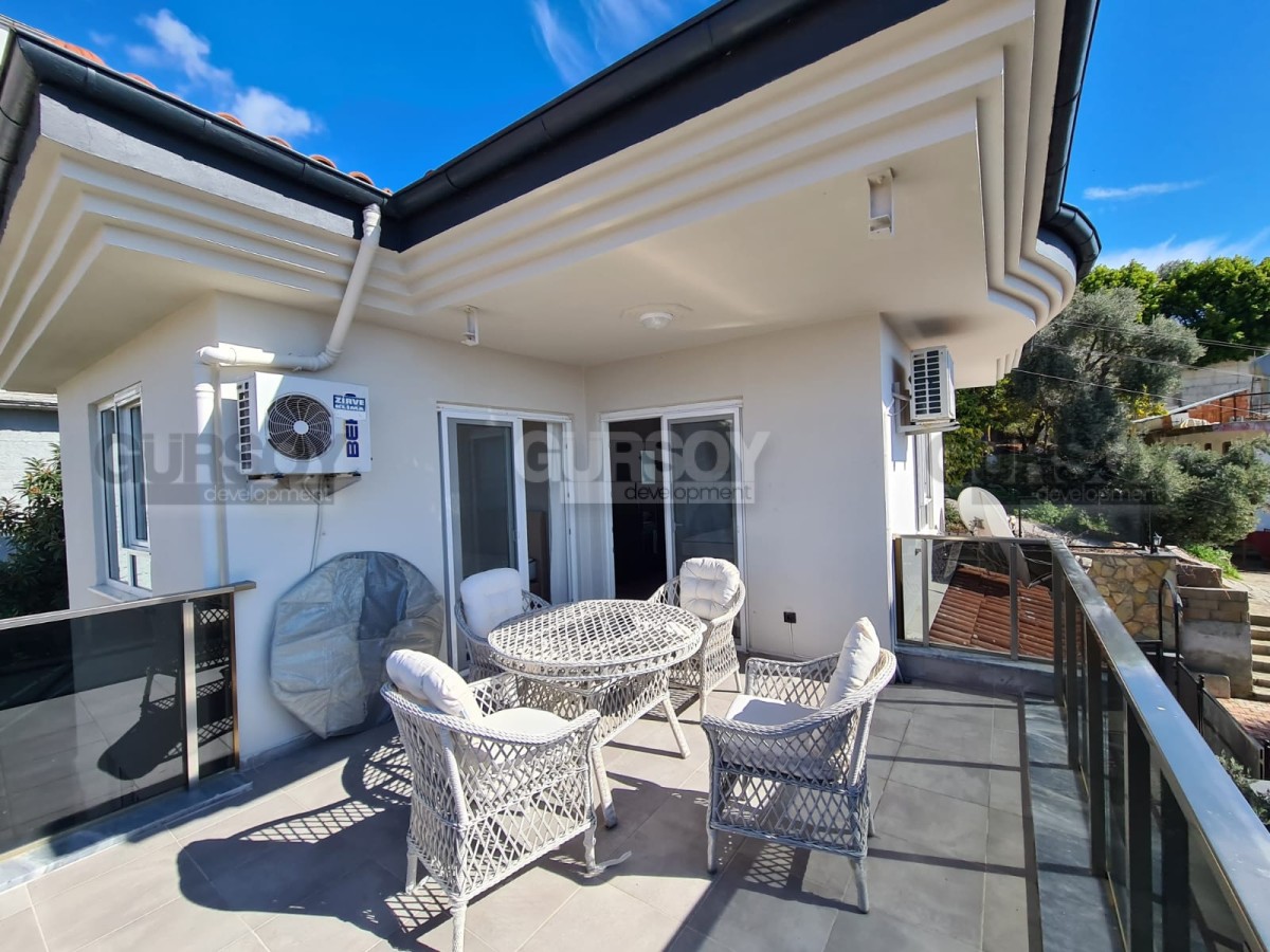Представляем вашему вниманию уникальную двухуровневую виллу в живописном районе Бекташ. Эта уютная вилла, построенная давно, сохраняет современный и ухоженный вид, идеально сочетая атмосферу горного уединения и комфорт современной жизни.