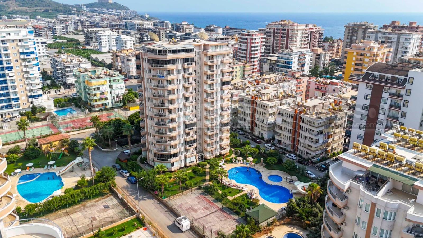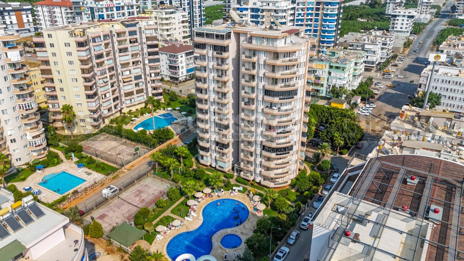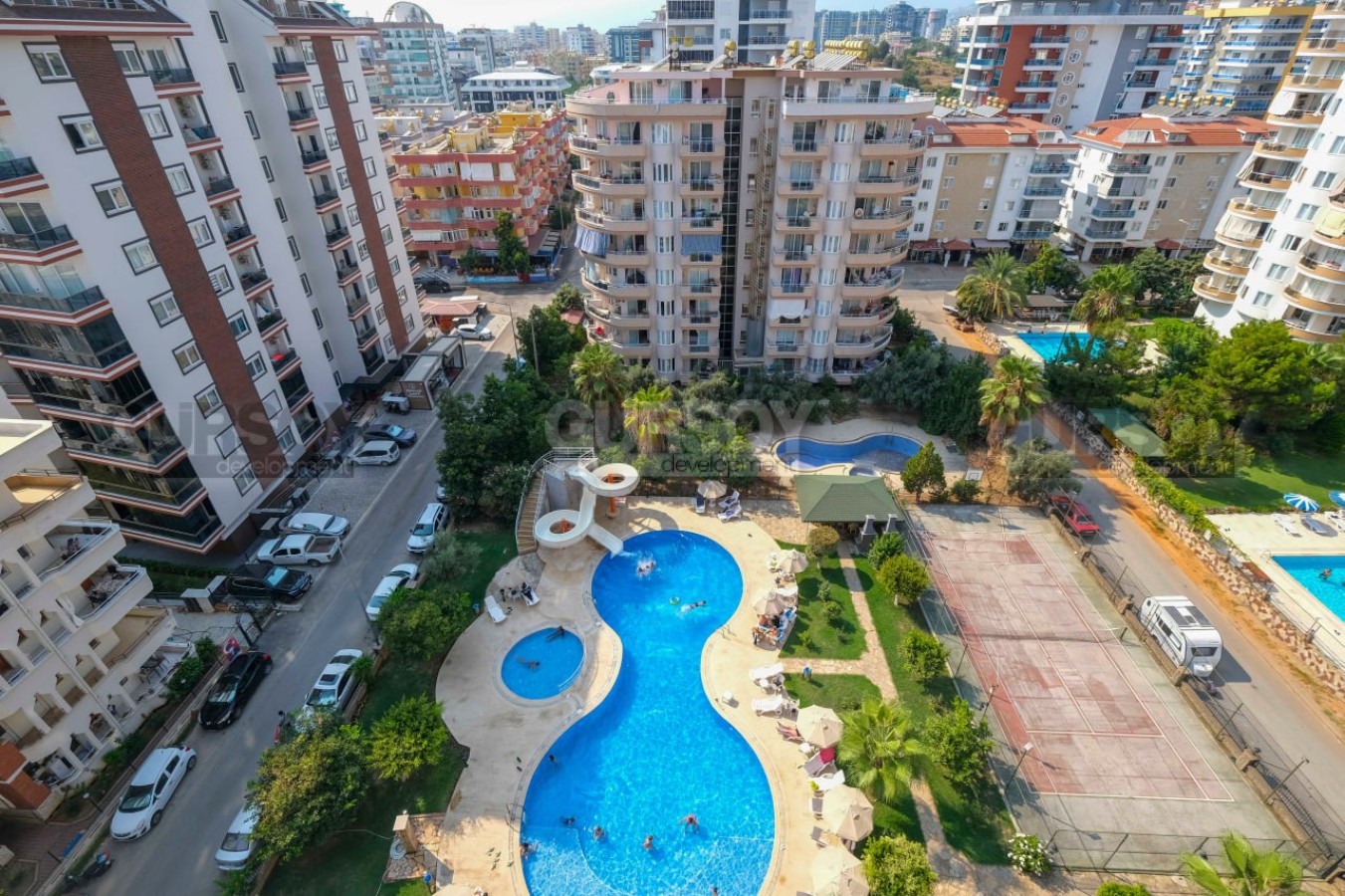 Комплекс обладает богатой инфраструктурой, которая удовлетворит потребности всех жителей. Открытый бассейн с аквапарком подарит вам и вашей семье незабываемые моменты отдыха и веселья. На территории комплекса также находятся уютные беседки и зоны для барбекю, теннисный корт и баскетбольная площадка, что позволит вам поддерживать активный образ жизни. Закрытая территория с круглосуточным видеонаблюдением и охраной гарантирует безопасность и спокойствие. Комплекс расположен всего в 400 метрах от моря, что позволяет наслаждаться морским бризом и прекрасными пляжами буквально в шаговой доступности.
