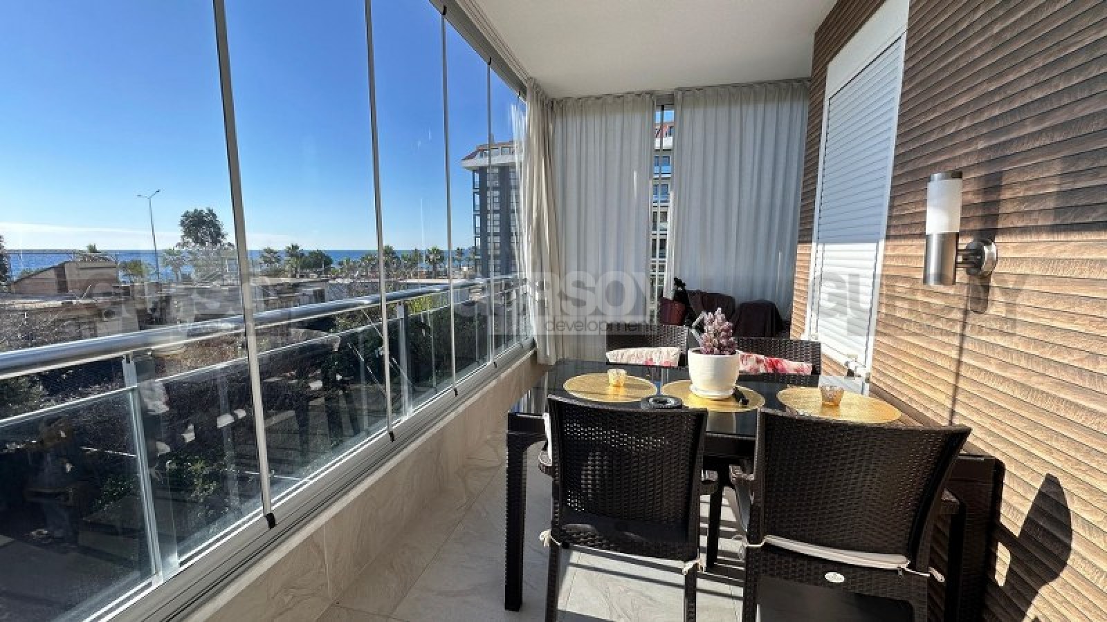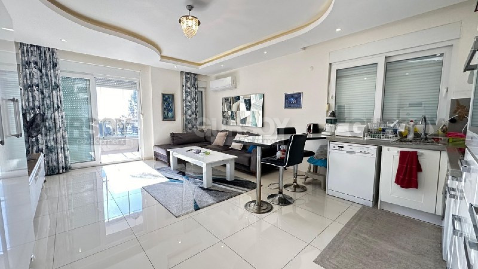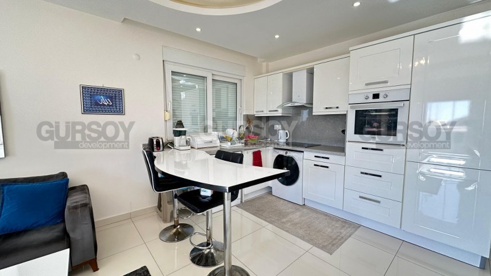 В квартире светлая и просторная гостиная, где большие окна наполняют пространство солнечным светом и открывают частичный вид на море. Современная кухня, оборудованная всем необходимым и соединяется с обеденной зоной, создавая идеальные условия для семейных ужинов и дружеских встреч.