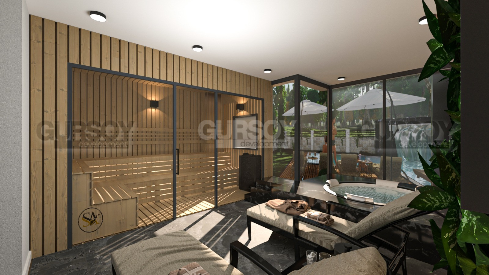 Несмотря на компактность территории, инфраструктура комплекса включает все необходимое для комфортной жизни и отдыха. Вы сможете насладиться открытым бассейном, сауной, джакузи, тренажерным залом, массажным кабинетом и комнатой отдыха. Кроме того, на огороженной территории будет создан зеленый сад с ландшафтным дизайном, детская площадка, зона для барбекю и парковка.