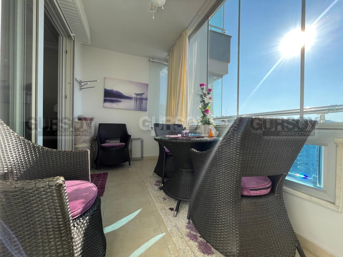Внутри этой просторной квартиры вас ждет комфорт высокого уровня. Американская кухня, объединенная с уютной гостиной, создает пространство для семейных посиделок и вечерних приемов. Спальня, ванная комната и балкон, открывающий завораживающий вид на море, крепость Кале и величественные горы, придают этой квартире неповторимый стиль.