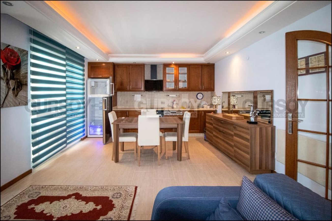 Портфолио нашей компании пополнила уютная, комфортабельная квартира, расположенная на самом берегу моря, в популярном районе Аланьи - Махмутлар. Квартира 2+1, общей площадью 130 м2, находится на 2-м этаже в доме 2010 года постройки, и предлагается с современной мебелью и бытовой техникой. В планировке апартаментов - совмещенная с кухней гостиная, 2 спальни, 2 оснащенных душевыми кабинами санузла, и 2 открытых балкона, с видом на море и внутренний двор комплекса. В светлом интерьере комнат удачно смотрится деревянная корпусная мебель, а картины и предметы декора создают по-домашнему уютную атмосферу. Гостиная визуально разделена на салон, с мягкими креслами, диваном, журнальными столиками и тумбой; и кухню, с большим столом и оснащенным встроенной бытовой техникой гарнитуром. Светлые спальни укомплектованы комфортабельными кроватями, тумбами, трюмо и гардеробным шкафом, а при входе имеется вместительный встроенный шкаф.