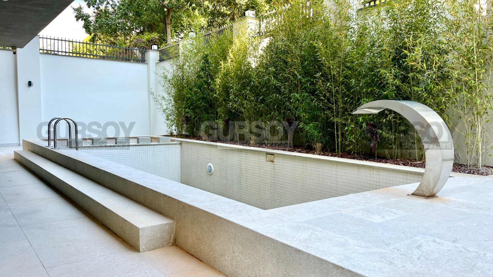 Комплекс предлагает инфраструктуру: открытый бассейн, фитнес-зал, сауна, паровая ком