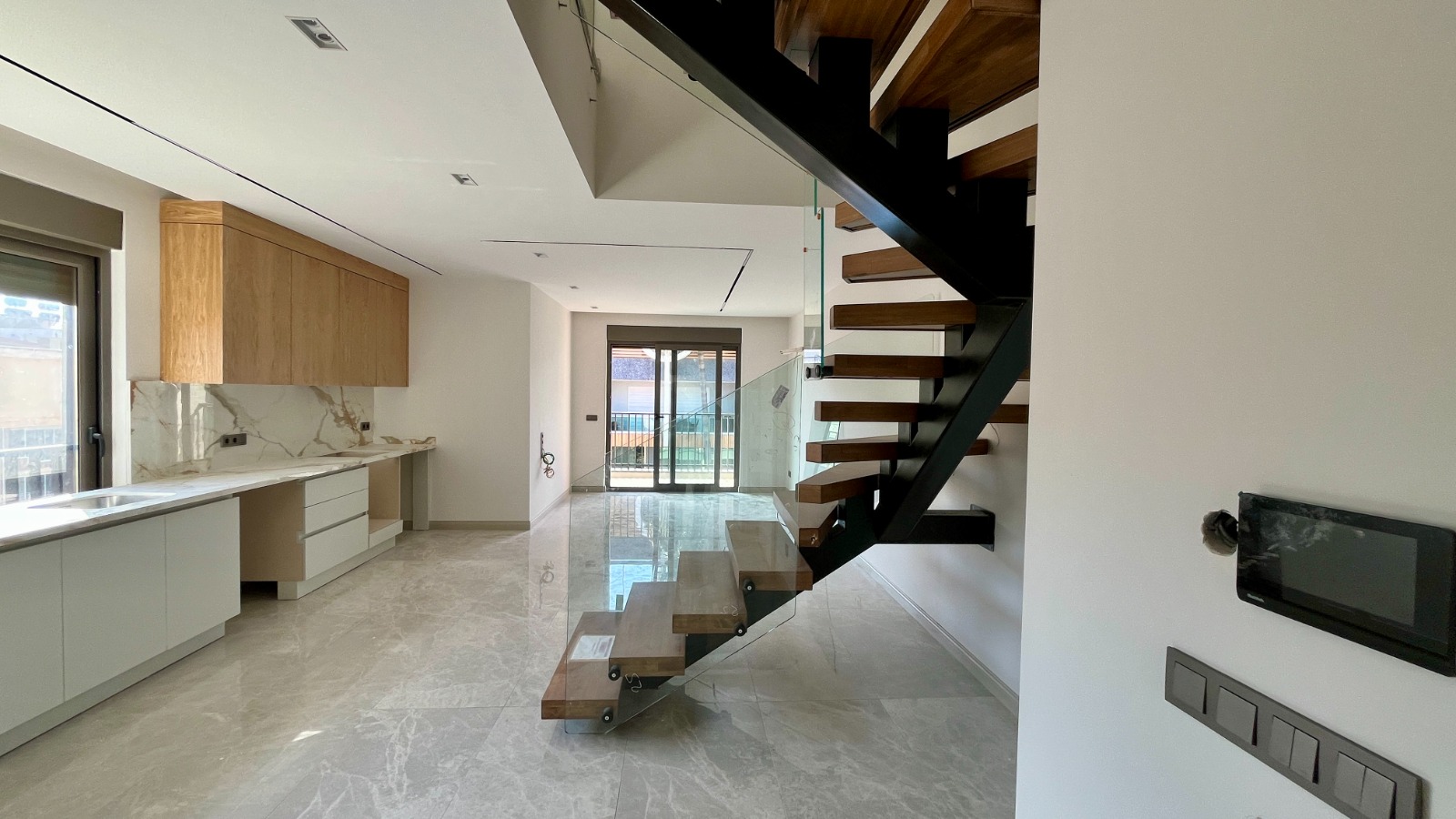Предлагается к продаже двухуровневая квартира 3+1 общей площадью 135 м², расположенная на 4–5 этажах в районе Обагёль. Дом 2025 года постройки, современный пятиэтажный жилой комплекс. Квартира имеет два балкона, планировка включает гостиную с кухней, отдельные спальни и два санузла. Во всех комнатах установлена система тёплого пола, что обеспечивает комфортное проживание в любое время года.