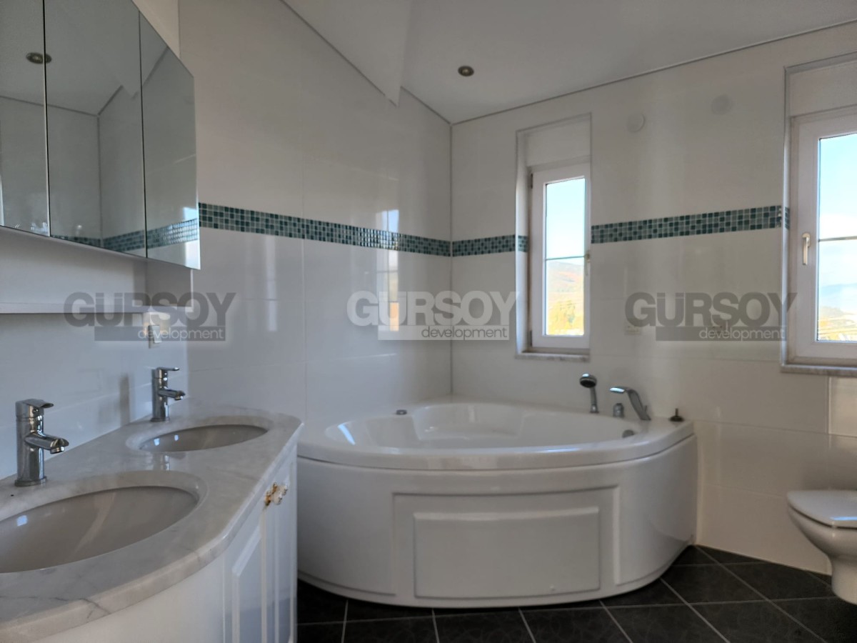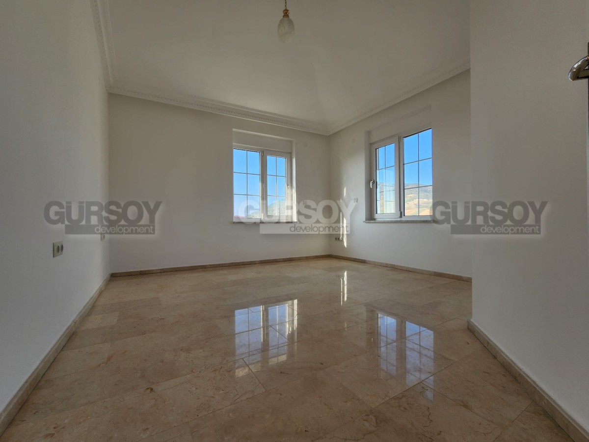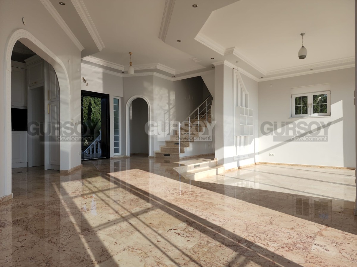Планировка виллы предусматривает 3 спальные комнаты, гостиную, совмещённую с кухней, 2 ванные комнаты, гостевой санузел, прачечную, два подвала, балкон и террасу. Также есть зона активности, которую можно оборудовать под сауну или фитнес зал. Жилая площадь составляет 350 м2. Вилла имеет дополнительную пристройку планировки 1+1, что подразумевает наличие гостиной, совмещённой с кухней, спальни и ванной комнаты. Вилла продается с качественным ремонтом, будущим владельцам останется только купить мебель и бытовую технику. В этом вам с удовольствием помогут менеджеры постпродажного сервиса компании Gürsoy Development.