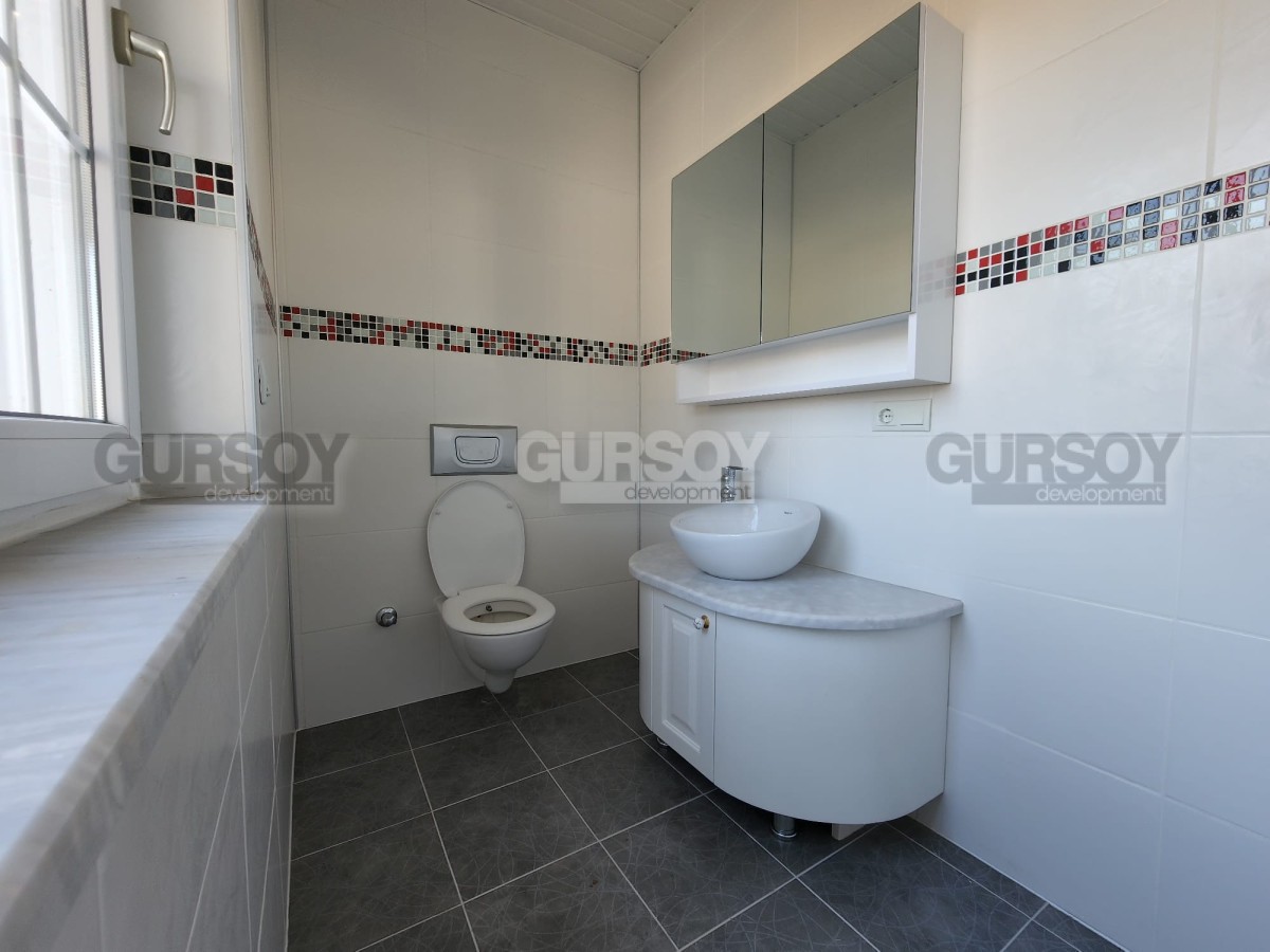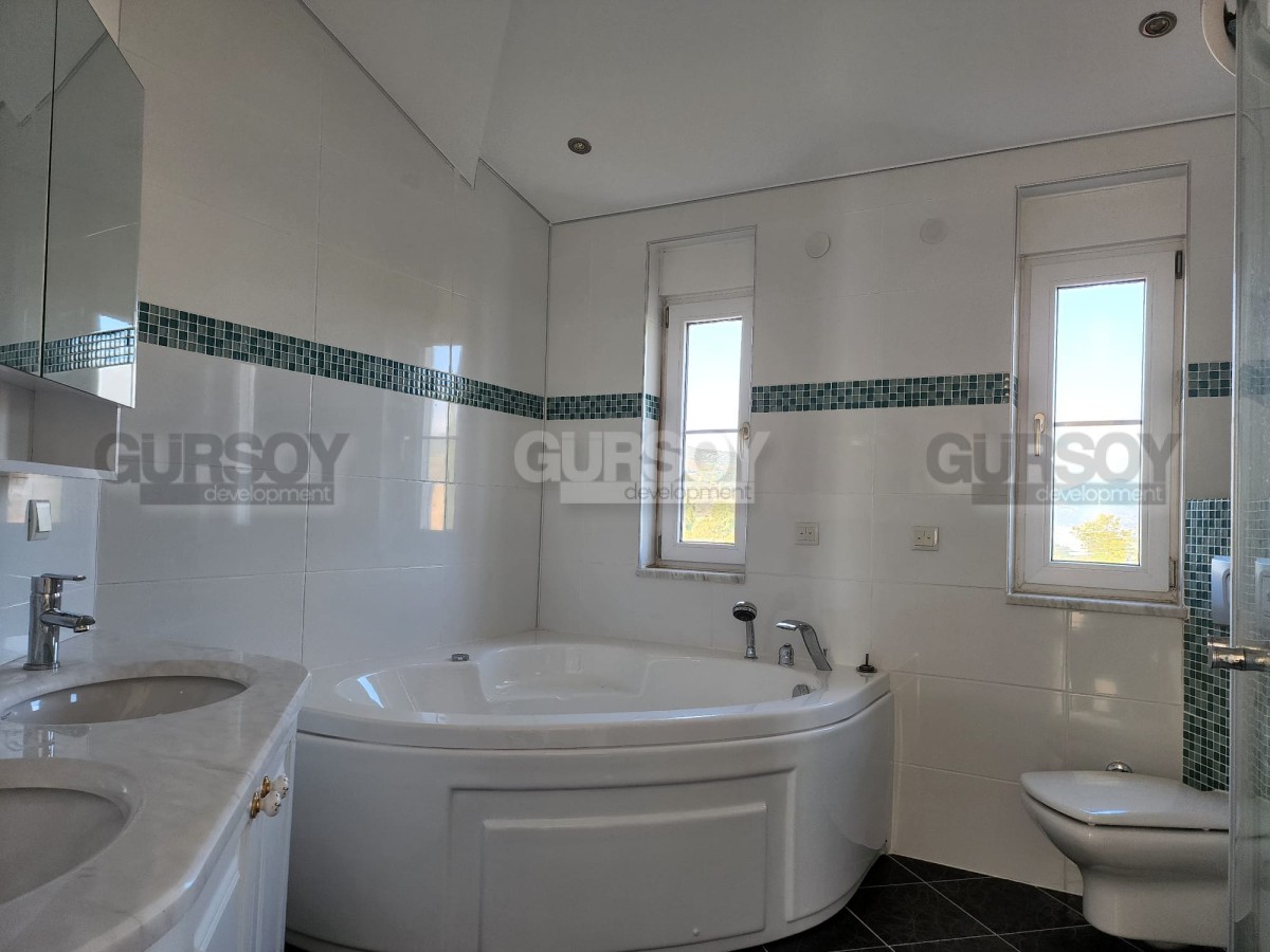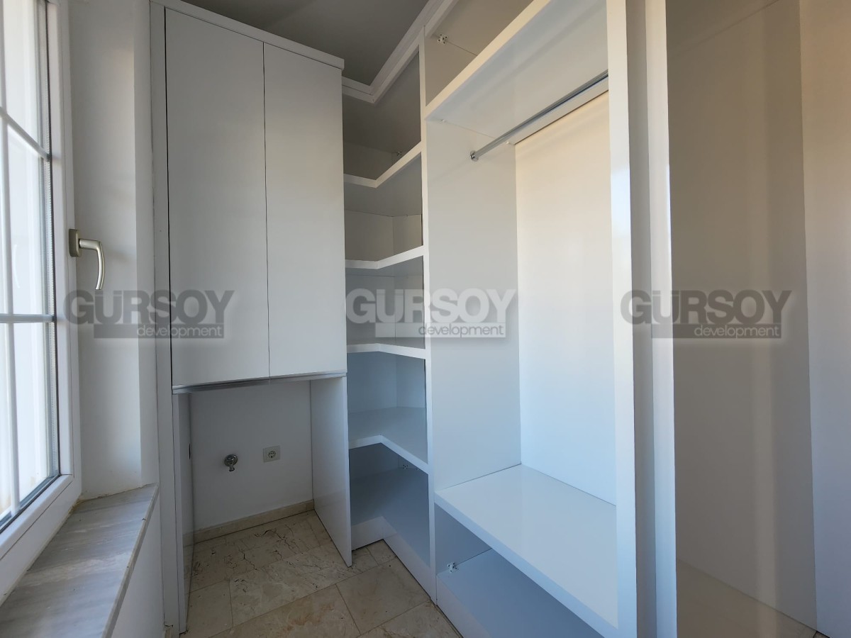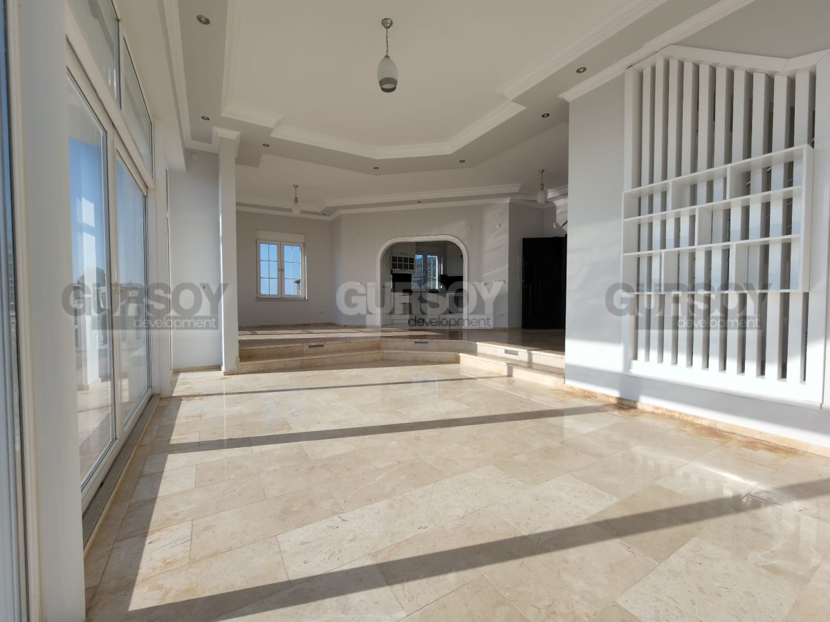 Планировка виллы предусматривает 3 спальные комнаты, гостиную, совмещённую с кухней, 2 ванные комнаты, гостевой санузел, прачечную, два подвала, балкон и террасу. Также есть зона активности, которую можно оборудовать под сауну или фитнес зал. Жилая площадь составляет 350 м2. Вилла имеет дополнительную пристройку планировки 1+1, что подразумевает наличие гостиной, совмещённой с кухней, спальни и ванной комнаты. Вилла продается с качественным ремонтом, будущим владельцам останется только купить мебель и бытовую технику. В этом вам с удовольствием помогут менеджеры постпродажного сервиса компании Gürsoy Development.