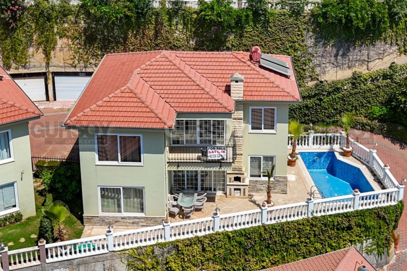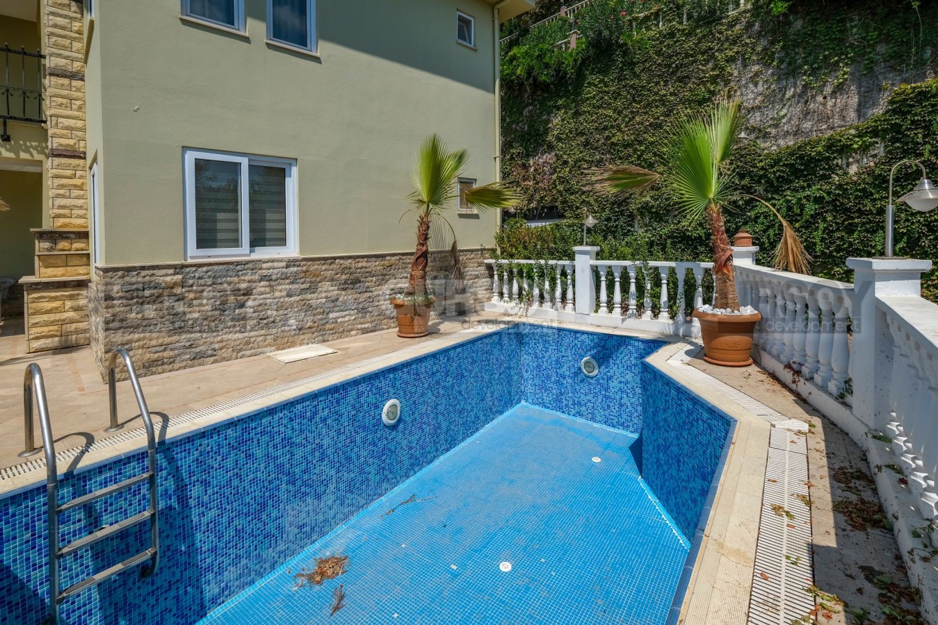 Просторная вилла формата 3+1 с общей площадью 220 м² расположена на участке земли 235 м². В доме предусмотрено три спальни, большая гостиная, отдельная кухня, три туалета и три ванные комнаты, что обеспечивает комфортное проживание для всей семьи. Особенностью квартиры является наличие частного бассейна, где можно наслаждаться отдыхом в уединенной обстановке.