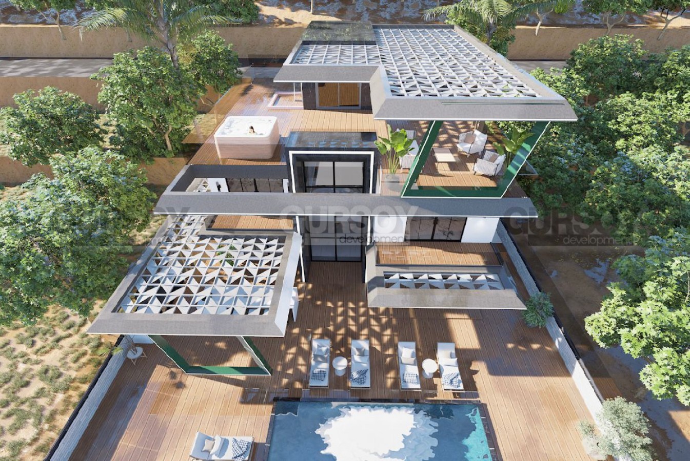 На последнем этаже расположены 4 уютные спальни, каждая из которых снабжена собственным санузлом, обеспечивая максимальное удобство и непревзойденную частную жизнь. Большая терраса, расположенная на этаже, служит прекрасным местом для отдыха и наслаждения яркими моментами, включая мини-кухню, уютную зону отдыха, джакузи и душевую зону. Подогреваемые полы везде внутри виллы позволят вам чувствовать комфорт в холодные времена года.