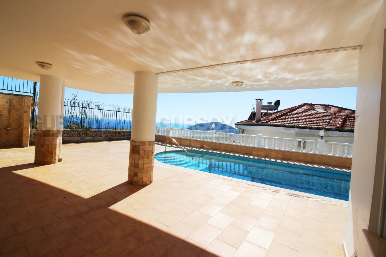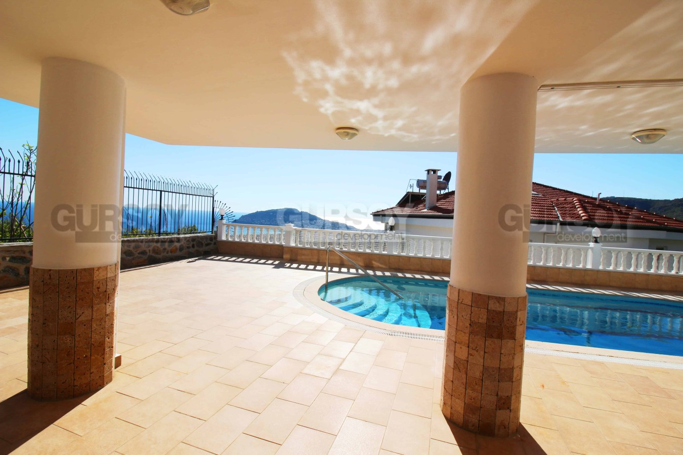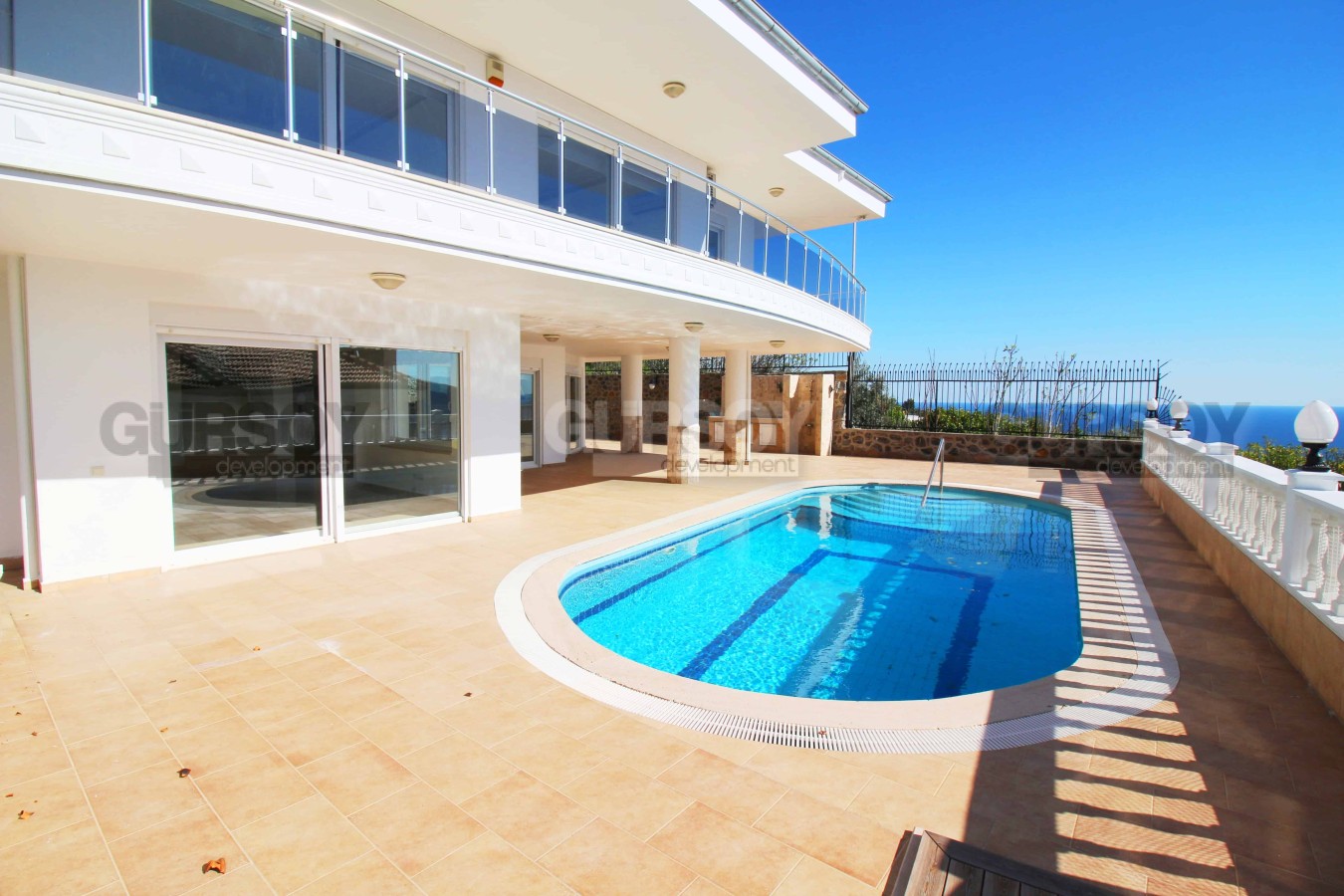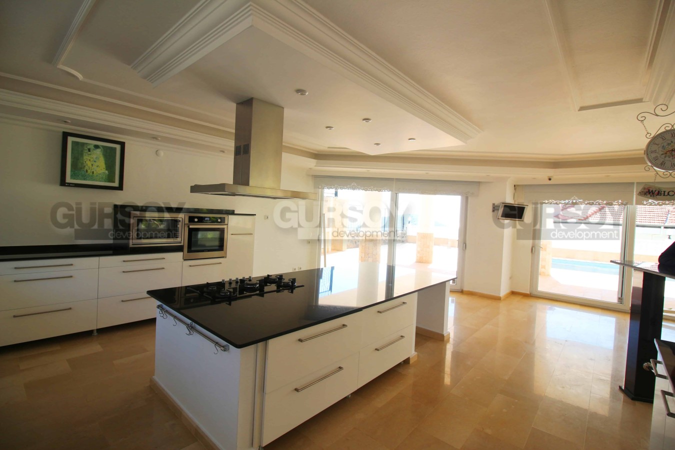 Планировка виллы предусматривает 6 спален и одну большую гостиную с вместительной кухней открытого типа, которая имеет функциональный кухонный гарнитур и остров, обеспечивающие много пространства для готовки пищи и хранения кухонных принадлежностей. Предусмотрено шесть спален, балконы и терраса с джакузи. Площадь виллы составляет 560 м2. Вилла имеет калориферную систему обогрева, интернет, антенну, кондиционеры марки LG.