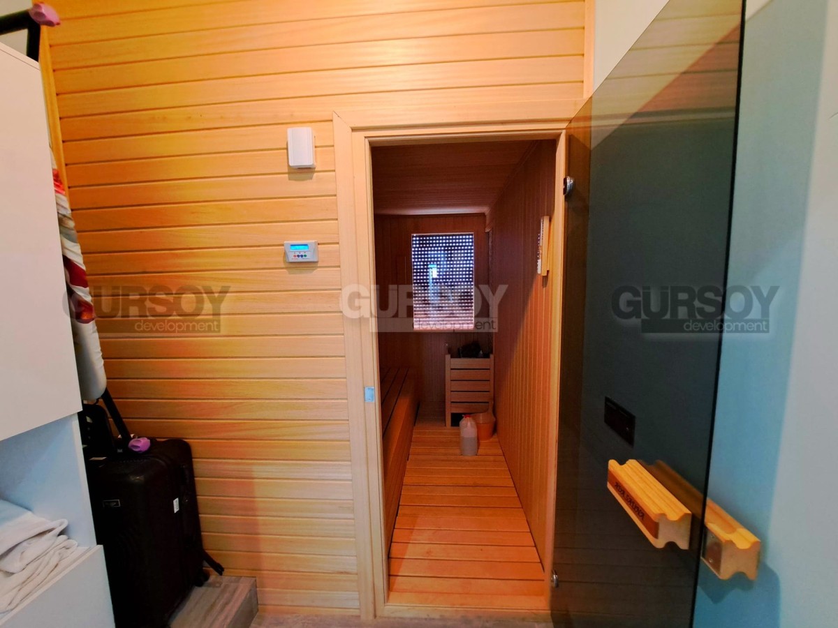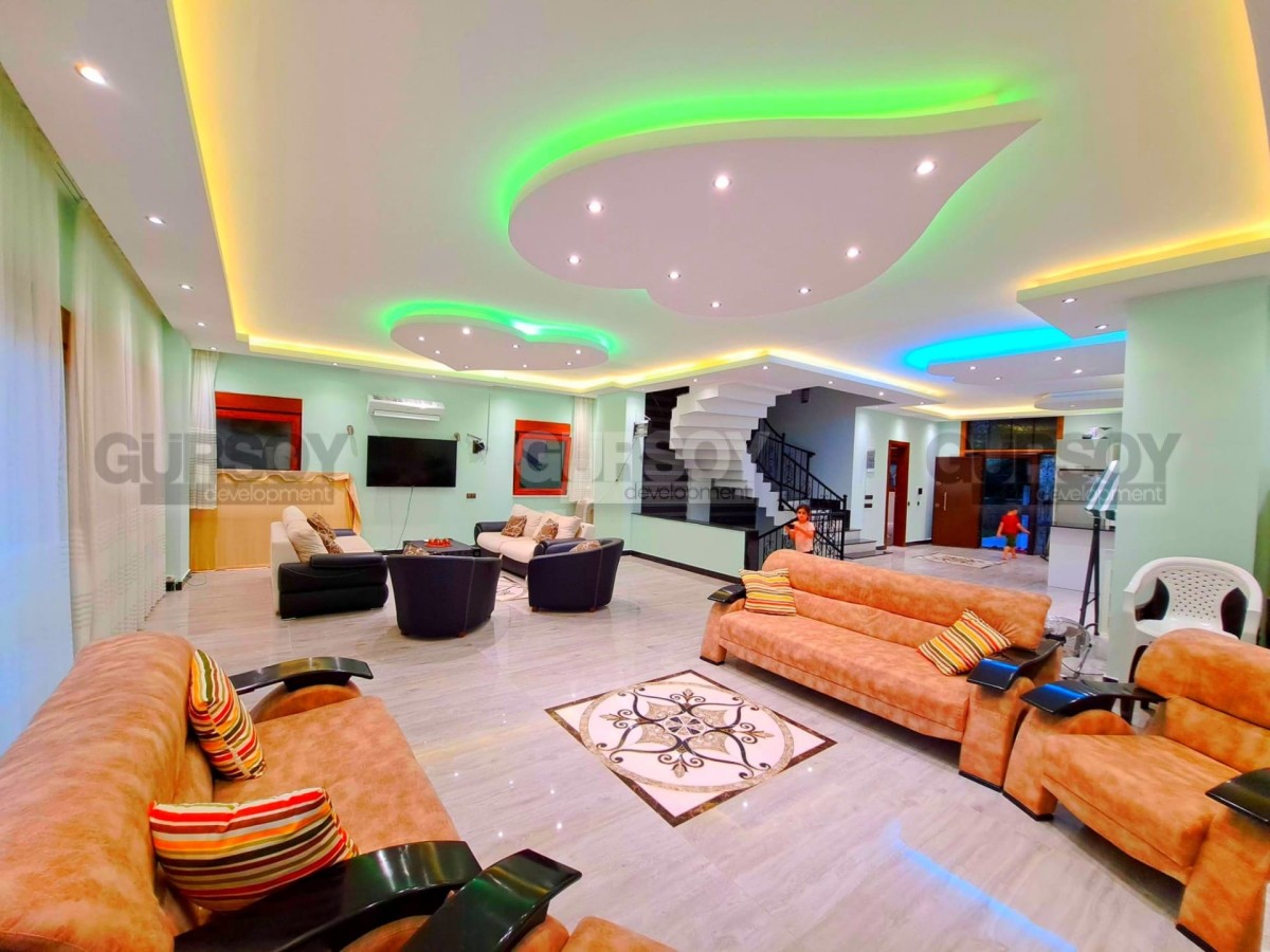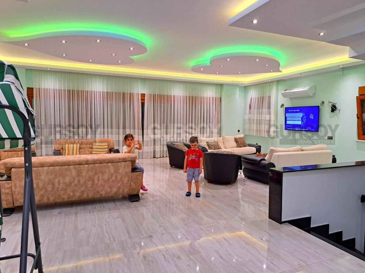 Вилла укомплектована всей необходимой мебелью и техникой, возможно сразу заехать и жить. Дизайн интерьера в светлых оттенках. Собственная инфраструктура включает: джакузи, бассейн и сад, зону отдыха с лежаками, хамам, сауну, парковку.