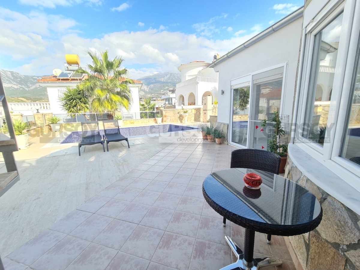 Вилла была построена в 2013 году и состоит из 2х этажей: гостиная с камином, совмещенная с кухней, 3и спальни, 2ве ванные комнаты, есть отдельная комната для хранения. Из окон и террасы виллы открываются виды на горы и море. До пляжа 3000м.