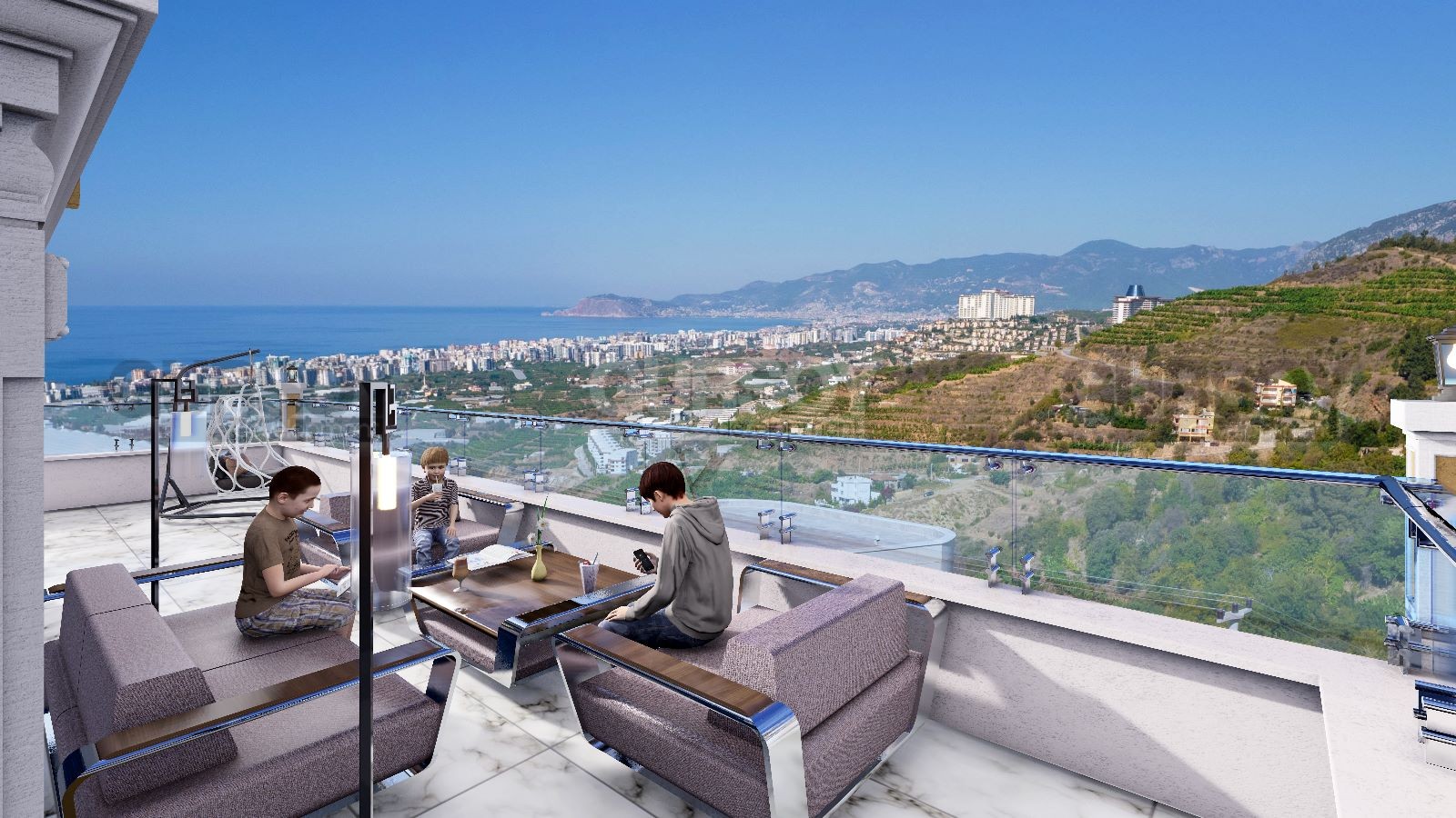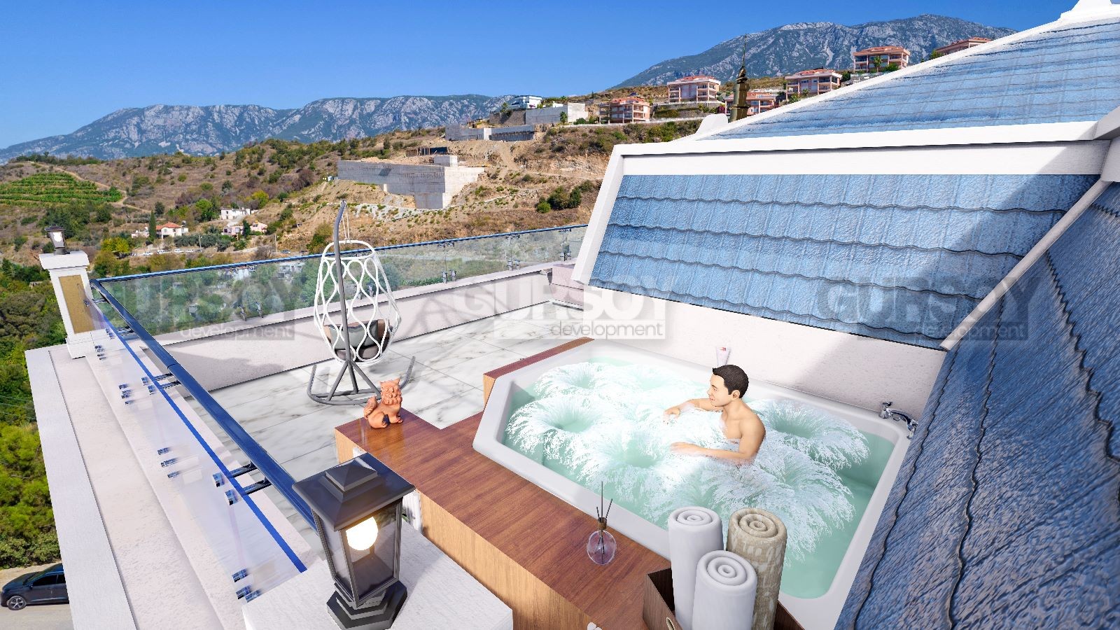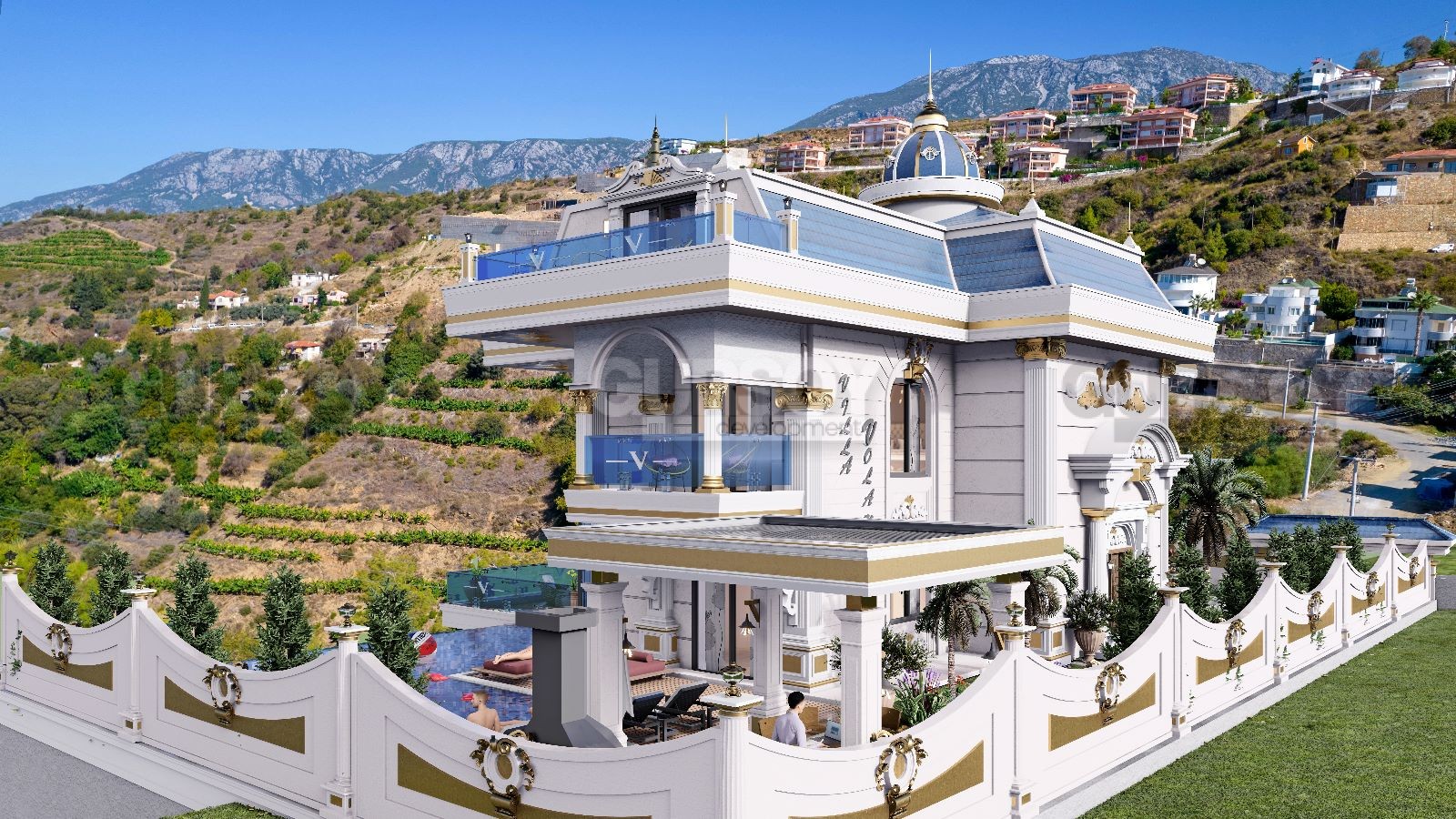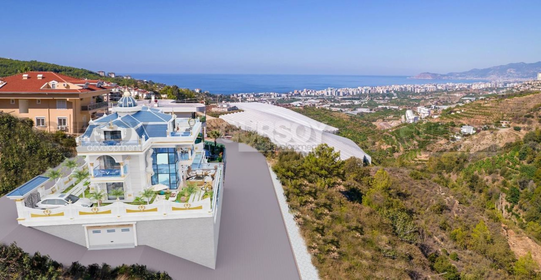Вилла предлагает роскошную планировку 5+2 и общую площадь 450 квадратных метров. Она включает пять изысканных спален, семь ванных комнат, две просторные гостиные, объединенные с кухней, гардеробную, прачечную и лифт для удобства передвижения по всему зданию. Особенностью виллы являются шикарные террасы, с которых открываются превосходные панорамные виды.