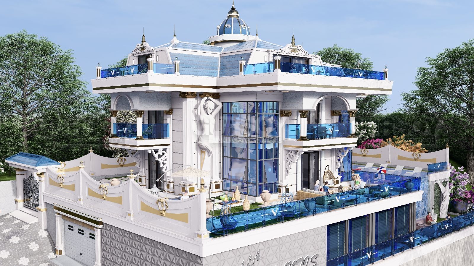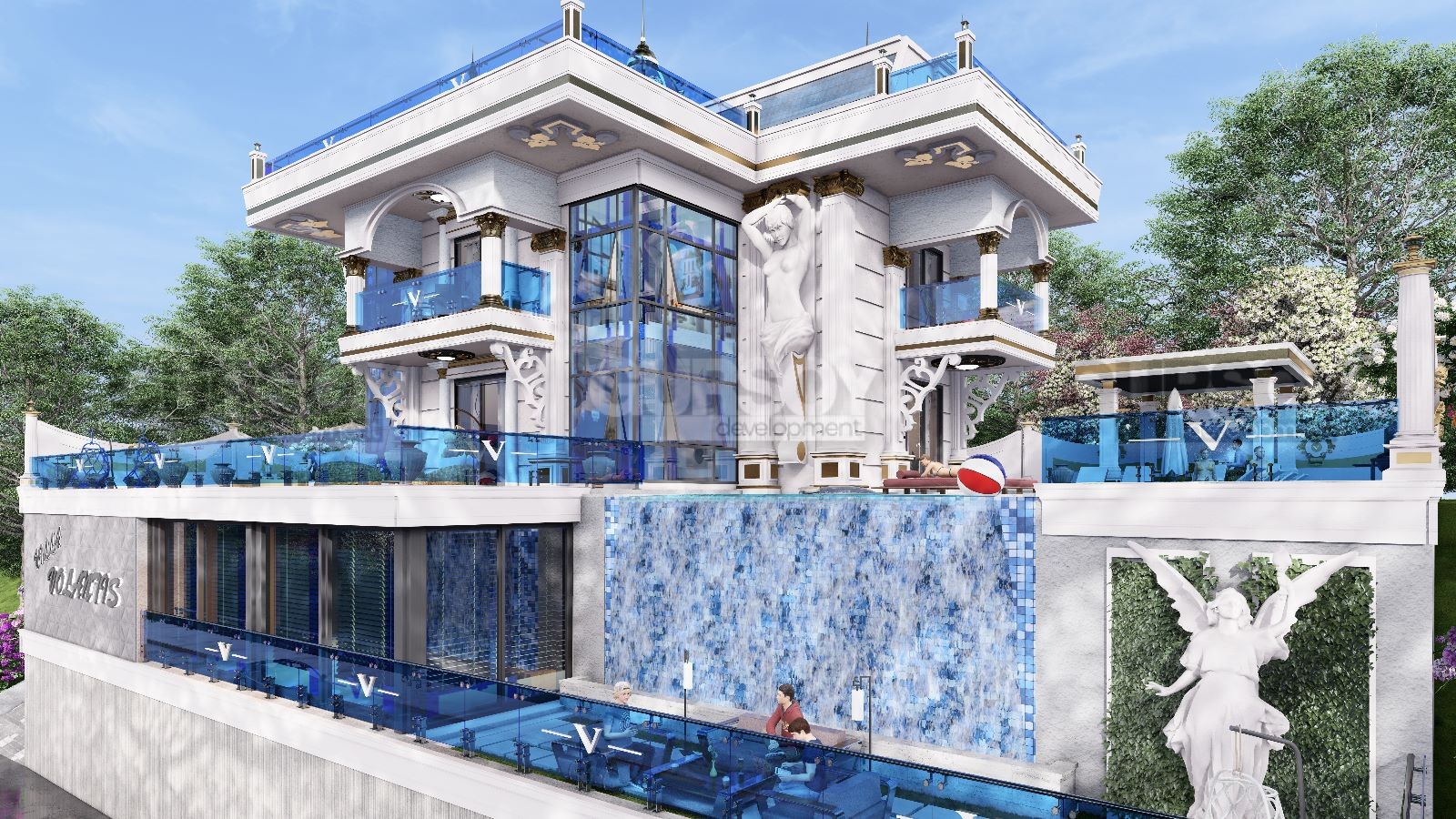 На цокольном этаже виллы будет расположена роскошная инфраструктура, сравнимая с пятизвездочным отелем. Вы сможете насладиться закрытым бассейном, сауной, фитнес зоной, хамамом, римской парной, а также посетить кинотеатр и воспользоваться закрытой парковкой. На территории виллы будет установлен открытый бассейн инфинити, а также зона отдыха и барбекю, зеленая территория с ландшафтным дизайном.