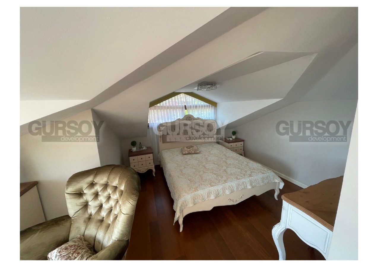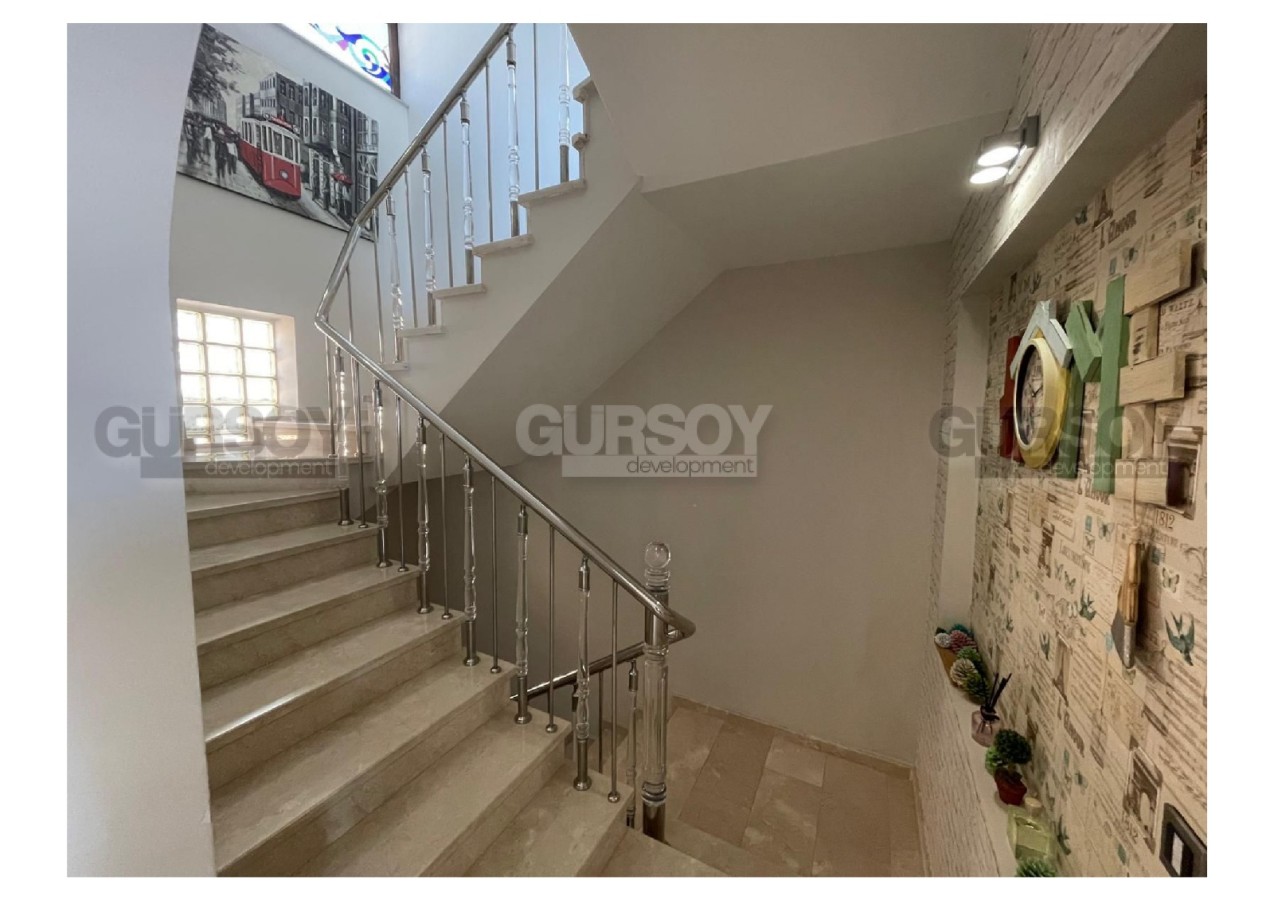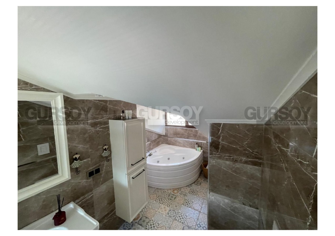 В самом сердце Аланьи, в престижном районе старинной крепости, предлагается к продаже уникальная вилла с изысканным дизайном, сочетающая в себе комфорт, простор и безупрочное качество исполнения. Общая площадь объекта составляет 300 м², из которых 200 м² — жилое пространство и 100 м² — просторные террасы и балконы. Планировка включает три уютные спальни, гостиную с камином, четыре ванных комнаты, полностью оборудованную кухню, сауну, гардеробную, хобби-комнату и два балкона. Особое внимание заслуживает частный лифт на 4 человека, соединяющий все уровни дома, начиная от гаража, а также отдельное кладовое помещение.