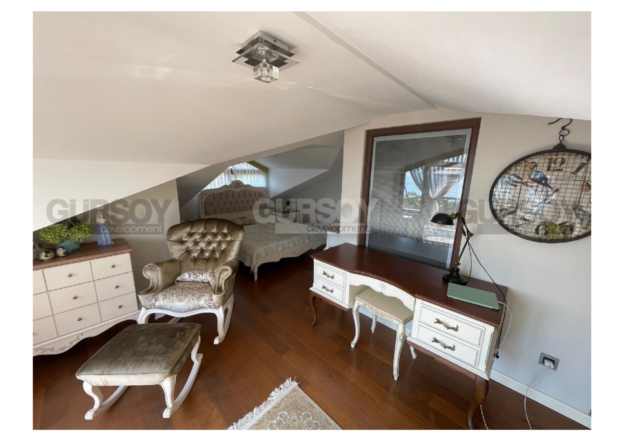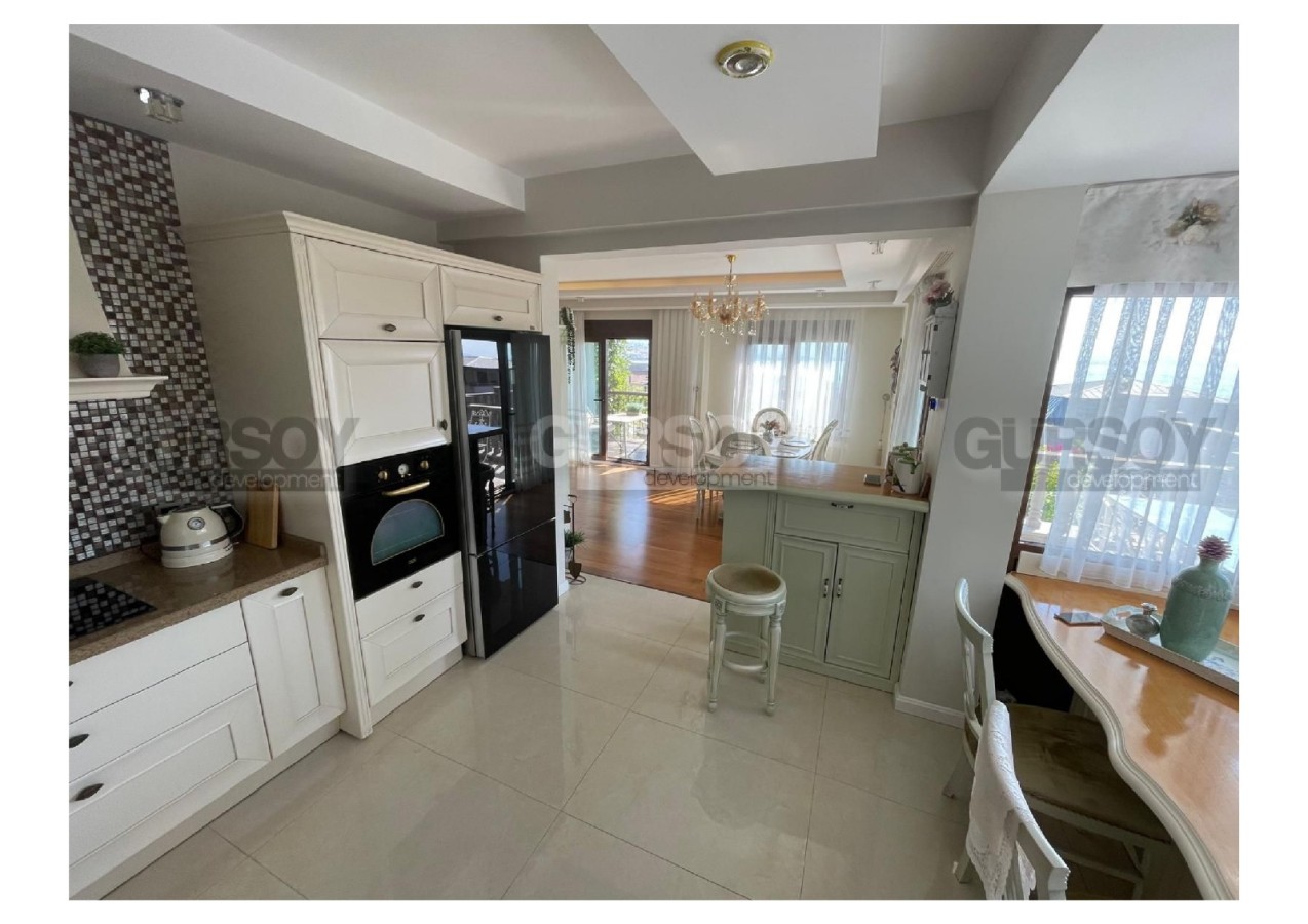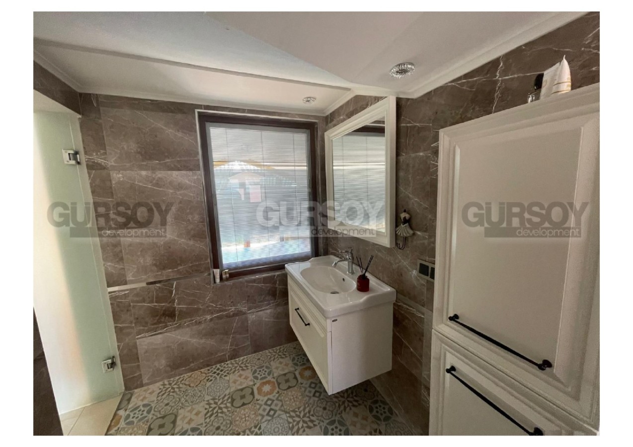 В самом сердце Аланьи, в престижном районе старинной крепости, предлагается к продаже уникальная вилла с изысканным дизайном, сочетающая в себе комфорт, простор и безупрочное качество исполнения. Общая площадь объекта составляет 300 м², из которых 200 м² — жилое пространство и 100 м² — просторные террасы и балконы. Планировка включает три уютные спальни, гостиную с камином, четыре ванных комнаты, полностью оборудованную кухню, сауну, гардеробную, хобби-комнату и два балкона. Особое внимание заслуживает частный лифт на 4 человека, соединяющий все уровни дома, начиная от гаража, а также отдельное кладовое помещение.