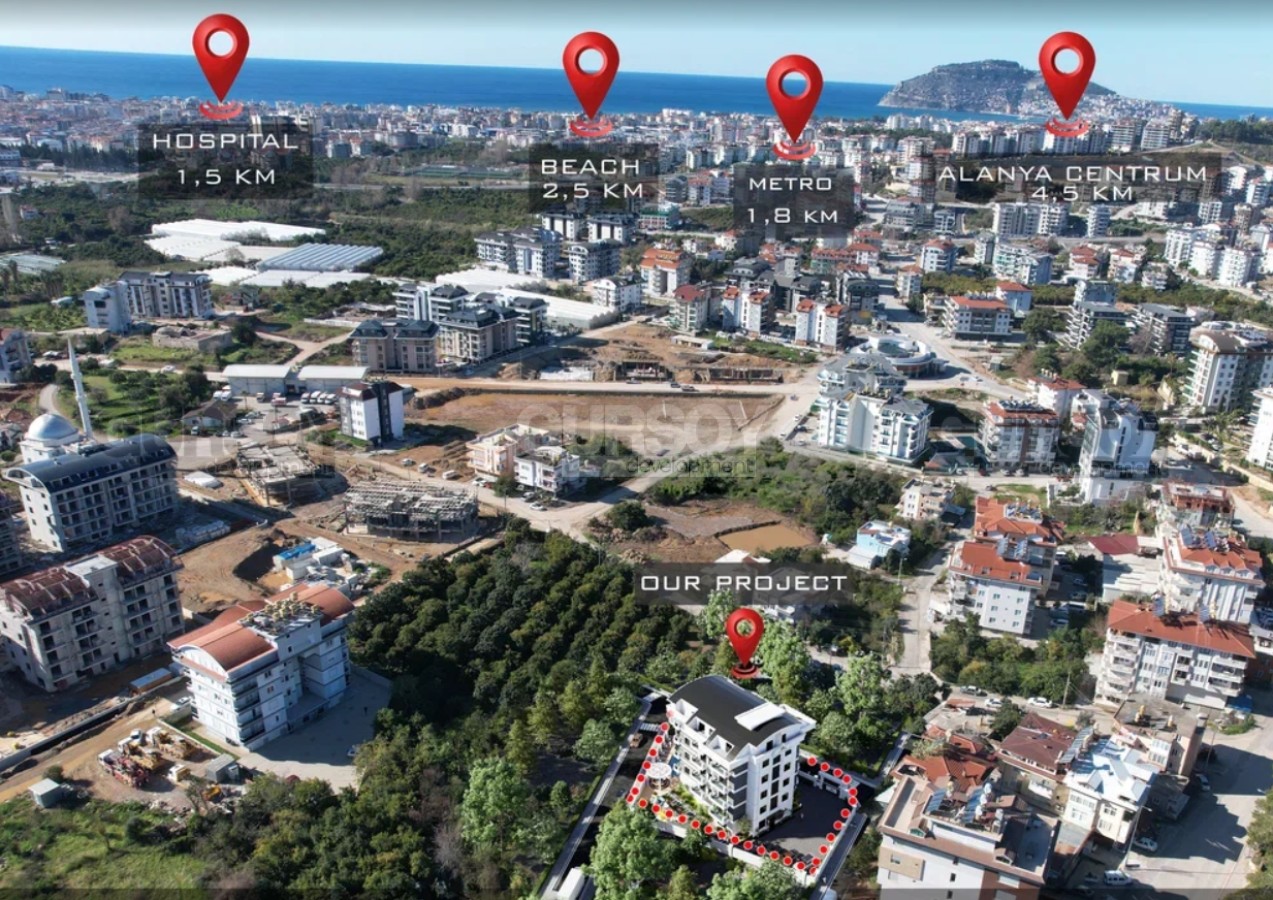 Локация: Верхняя Оба. До новой государственной больницы — 1,5 км, стоматологической клиники — 1,4 км, супермаркета METRO — 1,8 км, КОЧТАШ — 2 км, ТЦ Аланиум — 2,3 км, Американского колледжа культуры — 600 м, детского сада муниципалитета Аланьи — 300 м. Район Оба славится своей природой, близостью к центру города, развитой инфраструктурой, удобной транспортной развязкой, а также множеством кафе, ресторанов и магазинов в шаговой доступности.